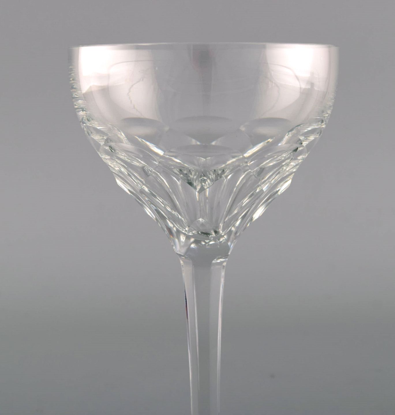 Val St. Lambert, Belgien. Ni rødvinsglas i klart mundblæst krystalglas. 1930'erne.