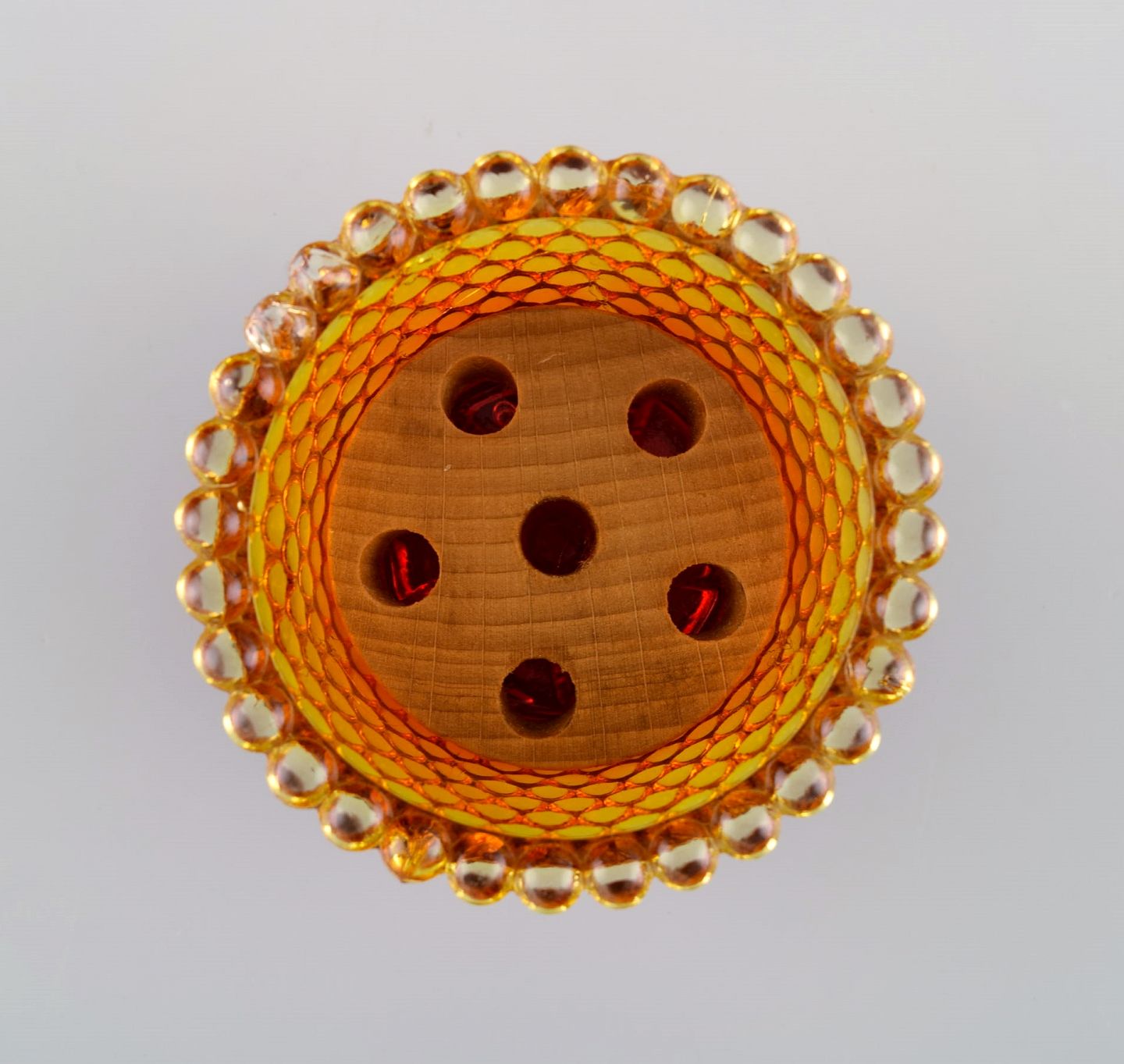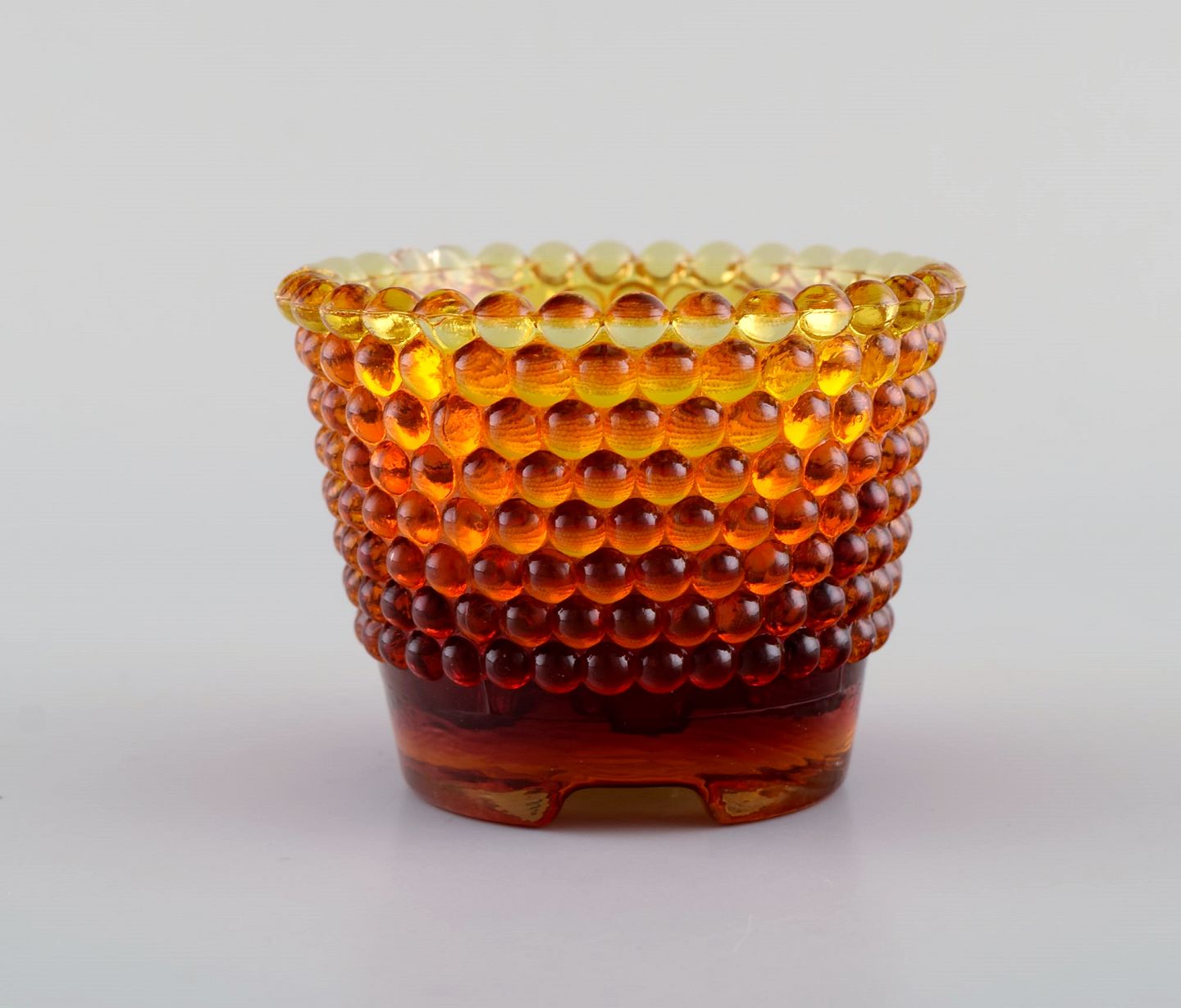 Monica Bratt for Reijmyre. Tre Pärlan lysestager til små lys i mundblæst kunstglas. 1950'erne. Måler: 7,5 x 6 cm. I flot stand. Mærkat.