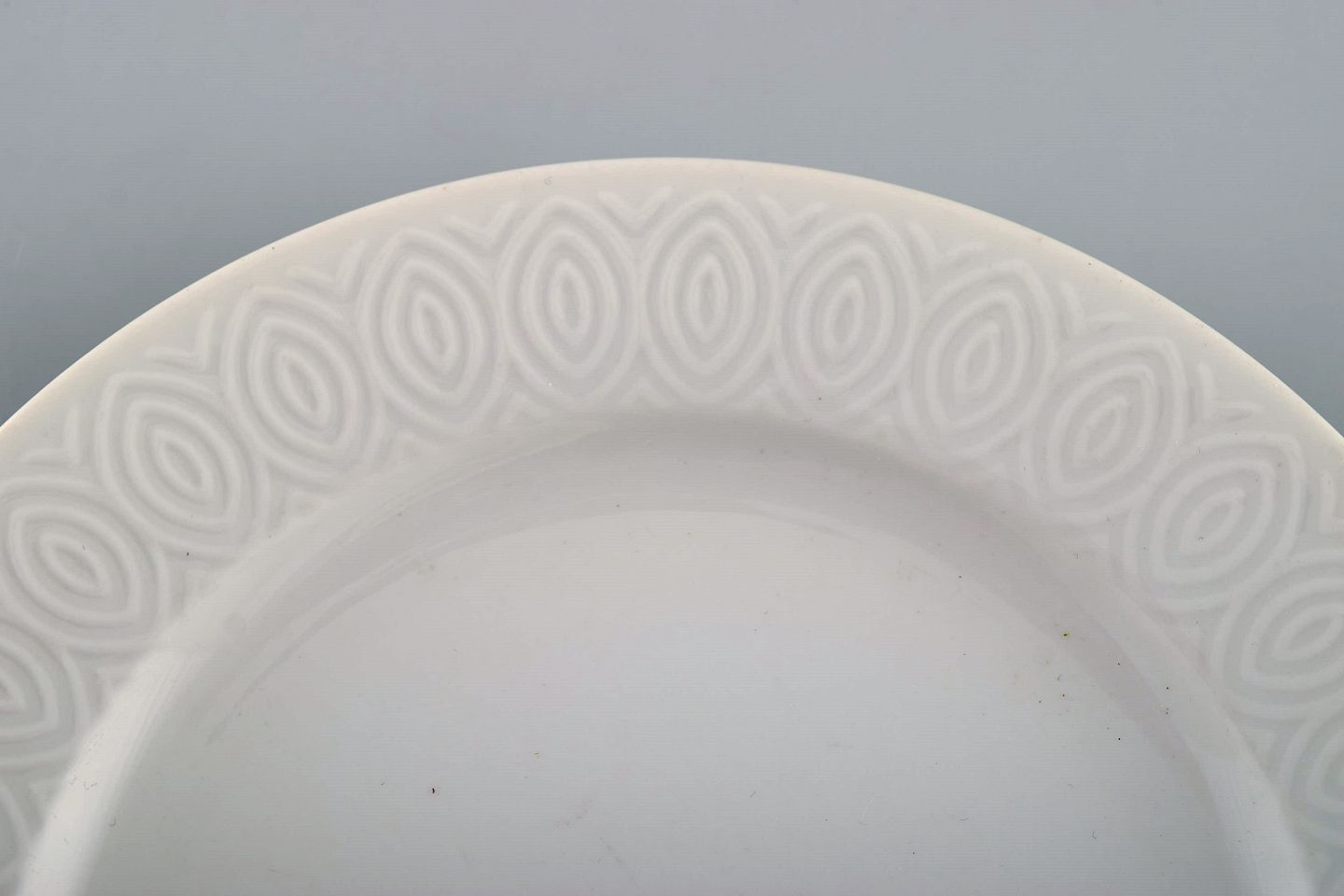 Royal Copenhagen. Salto Stel, Hvidt. Ni salattallerkener. 1960'erne. Diameter: 17,5 cm. I flot stand. 1. sortering. Tegnet af Axel Salto i 1956.