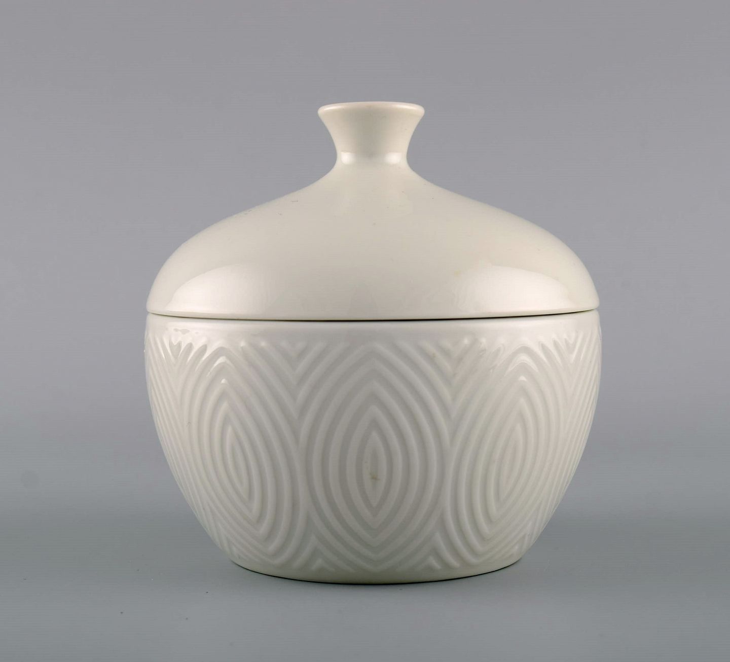 Royal Copenhagen. Salto Stel, Hvidt. To sukkerskåle og flødekande. 1960'erne. Stor sukkerskål måler: 10,8 x 10,5 cm. Flødekanden måler: 12,2 x 8,5 cm. I flot stand. 1. sortering. Tegnet af Axel Salto i 1956.