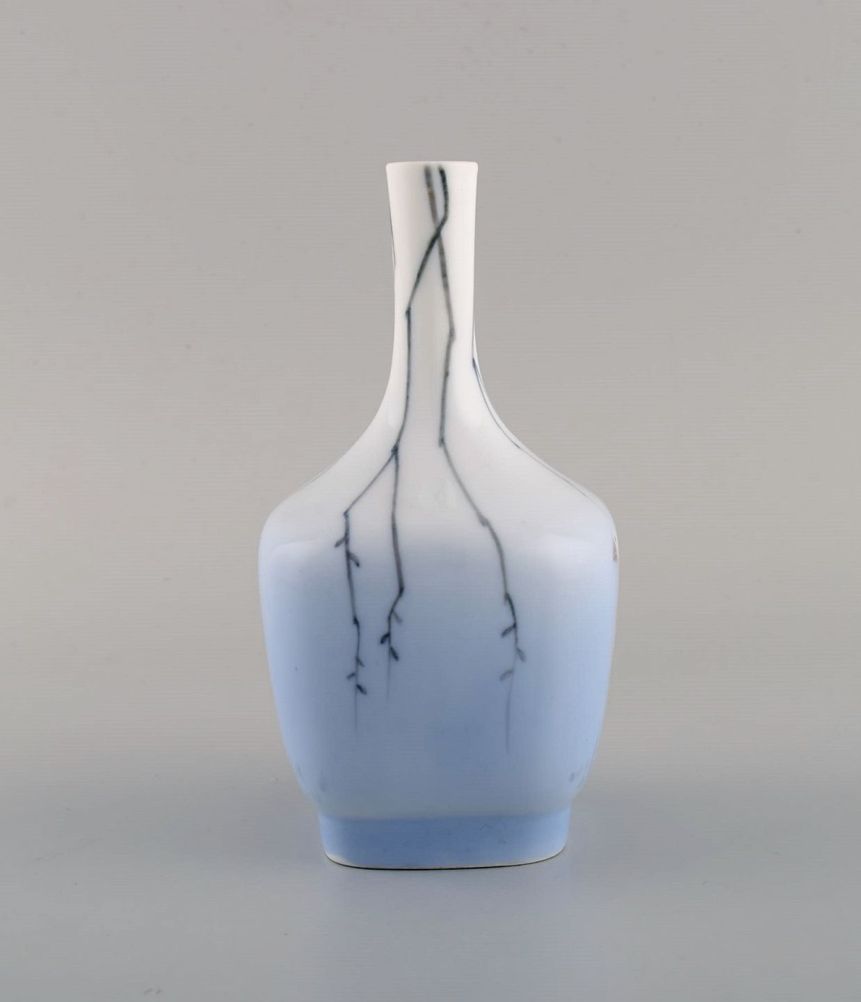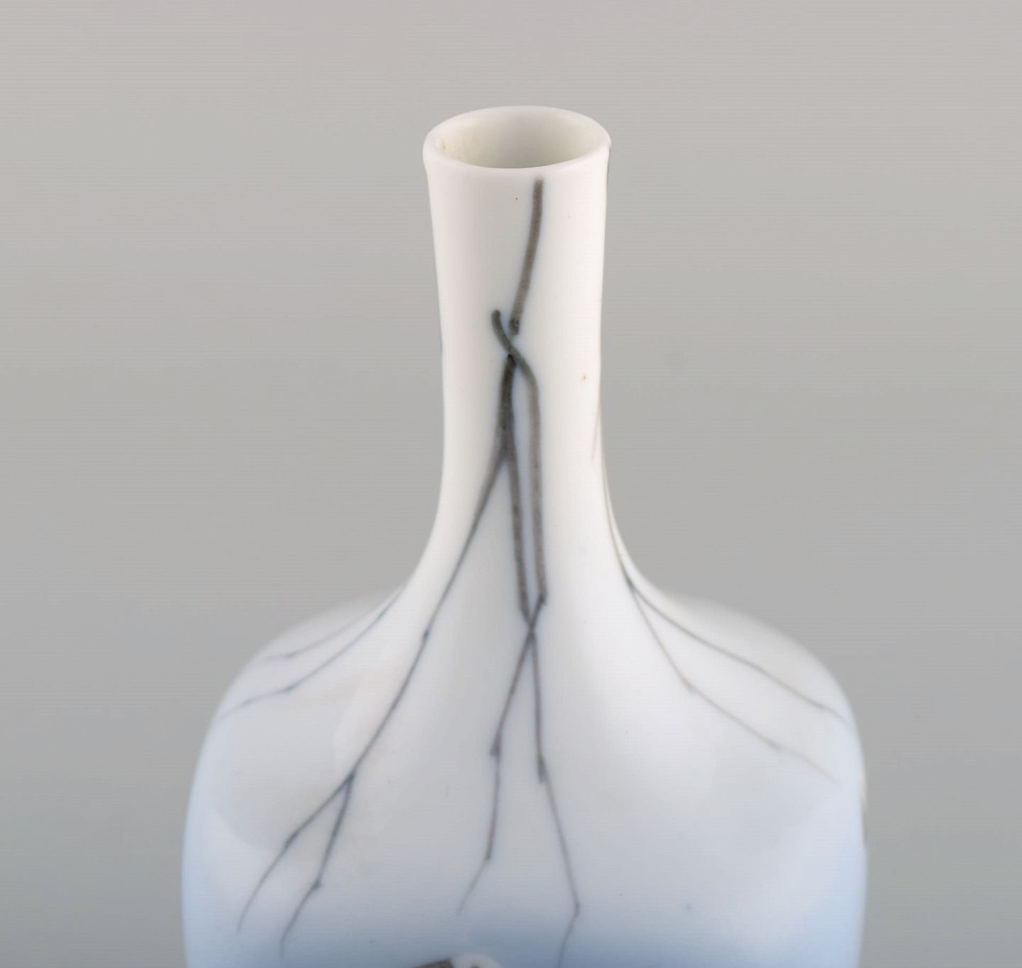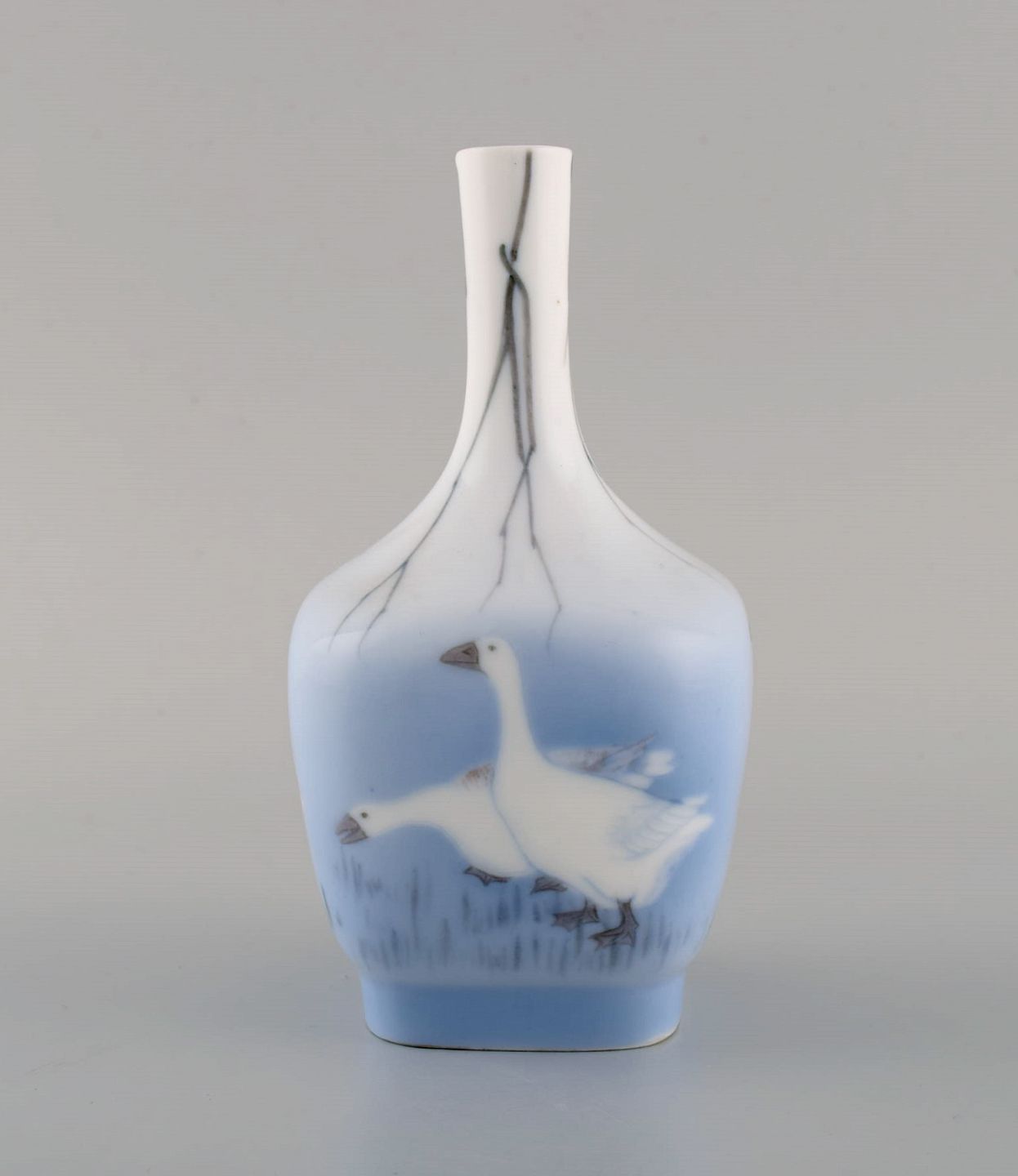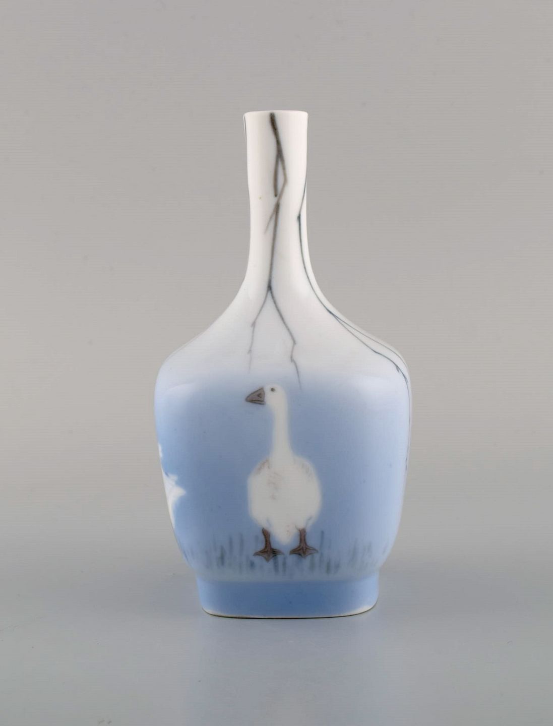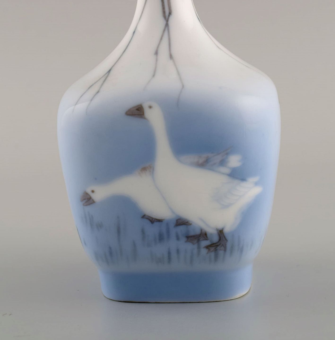 Sjælden Royal Copenhagen art nouveau vase i porcelæn med håndmalede gæs. Ca. 1910. Måler: 16 x 8 cm. I flot stand. Stemplet.
