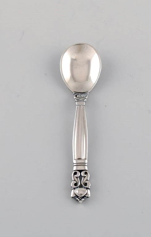Johan Rohde for Georg Jensen. To konge saltkar i sterlingsølv med kongeblå emalje og tilhørende skeer. Design 62. I flot stand. Stemplet. Saltkaret måler: 6 x 4 x 1,5 cm. Skeen måler: 6 cm.