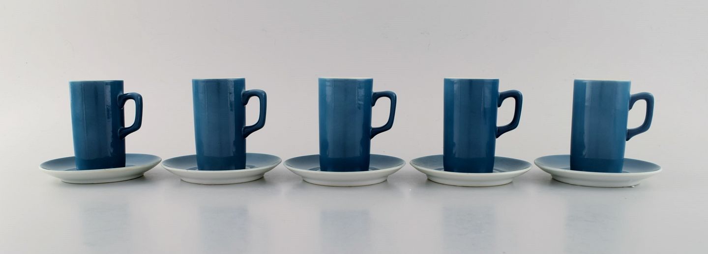 Kenji Fujita for Tackett Associates. Fem kaffekopper med underkopper i porcelæn. Dateret 1953-56. Koppen måler: 8 x 4,5 cm. Underkop diameter: 10,3 cm. I flot stand. Stemplet.