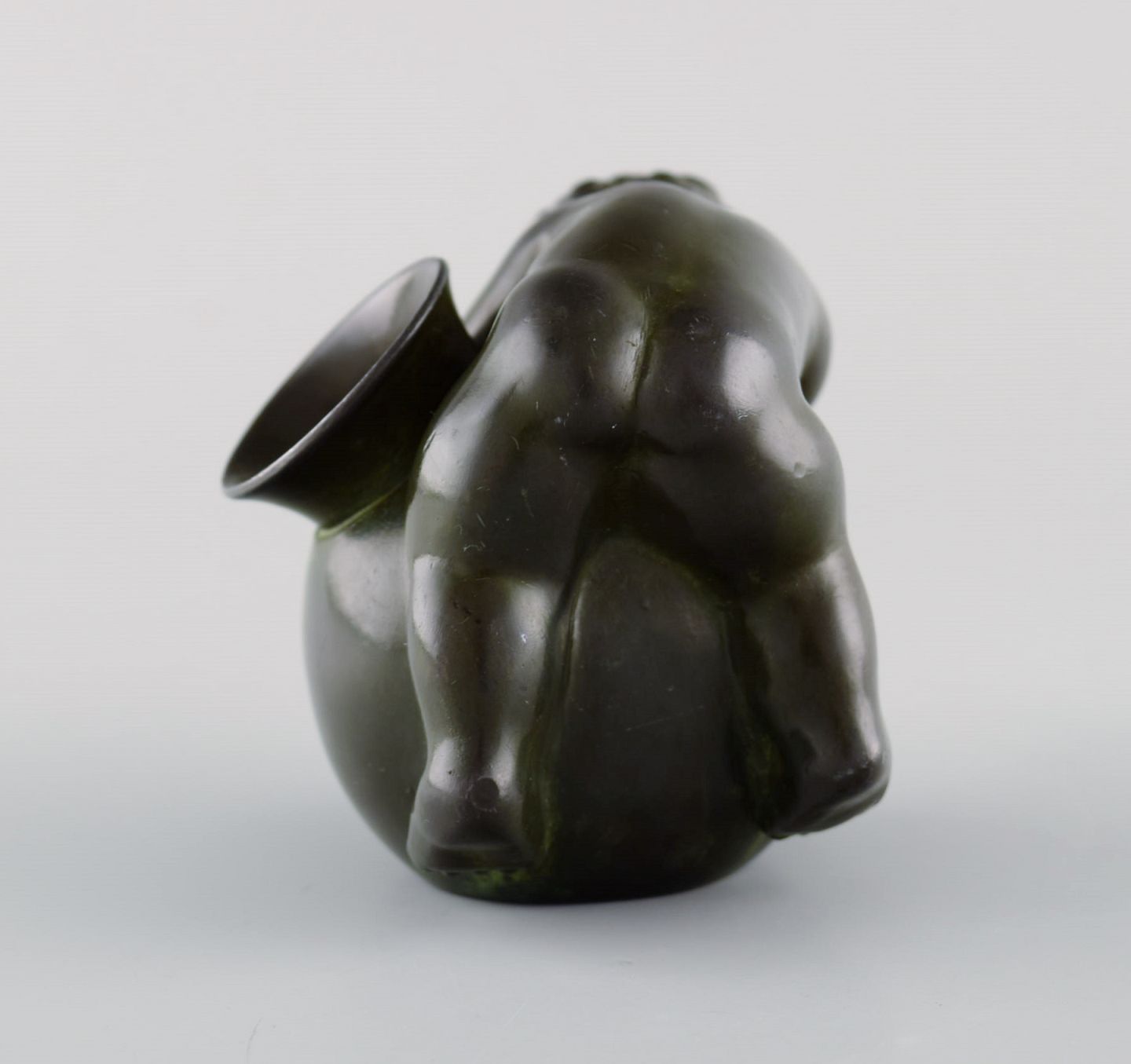 Just Andersen (1884-1943), Danmark. Skulptur af drengebarn i diskometal. 1940'erne. Måler: 8 x 6 cm. I flot stand. Stemplet.