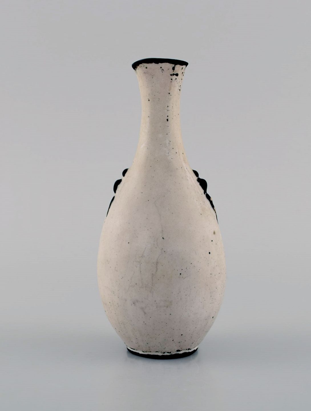 Svend Hammershøi for Kähler, HAK. Vase i glaseret stentøj. Smuk gråsort dobbeltglasur. 1930/40'erne. Måler: 15 x 6,5 cm. Stemplet. I flot stand.