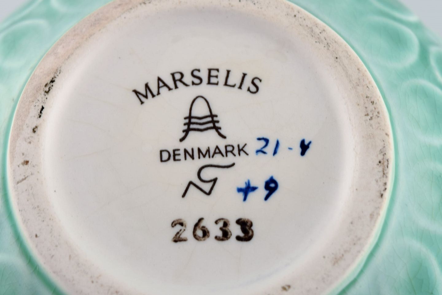 Nils Thorsson for Aluminia. Marselis vase i glaseret fajance. Smuk glasur i turkis nuancer. Midt 1900-tallet.