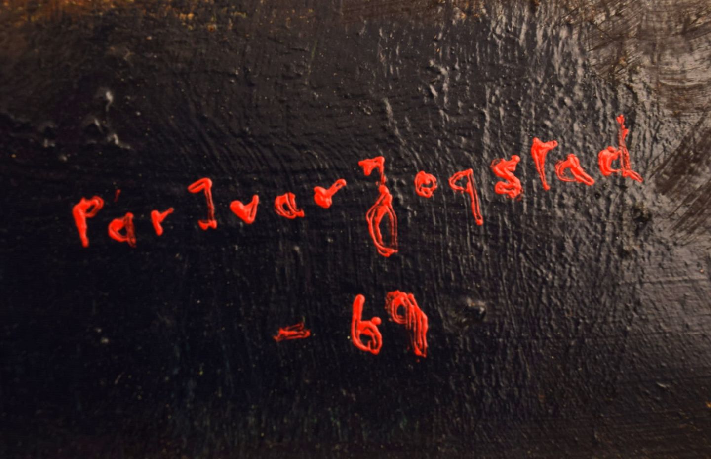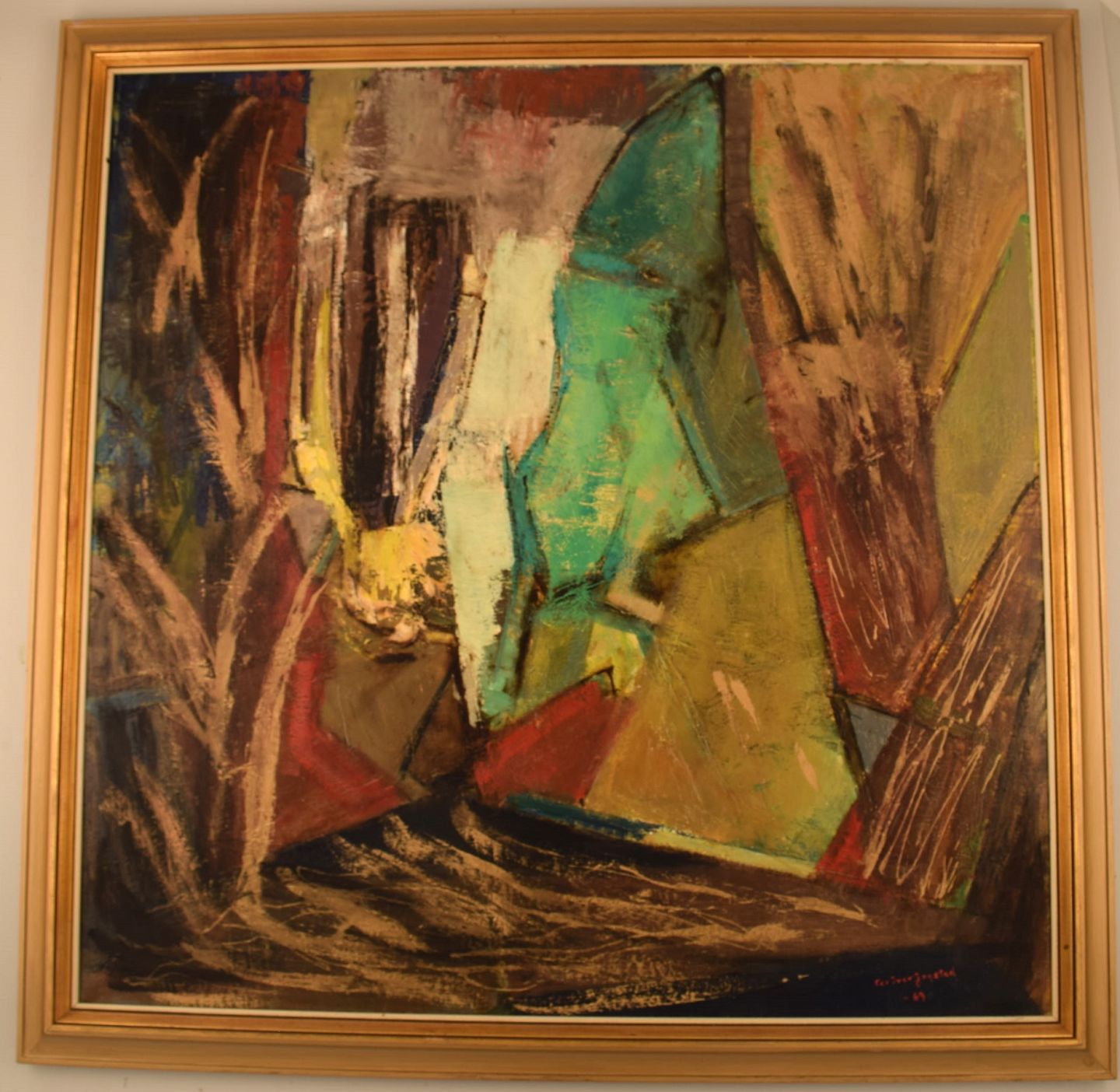 Pär Ivar Jogstad (1906-1980), Sverige. Olie på lærred. Abstrakt komposition. Dateret 1969. Lærredet måler: 79 x 79 cm. Rammen måler: 5,5 cm. I flot stand. Signeret og dateret.