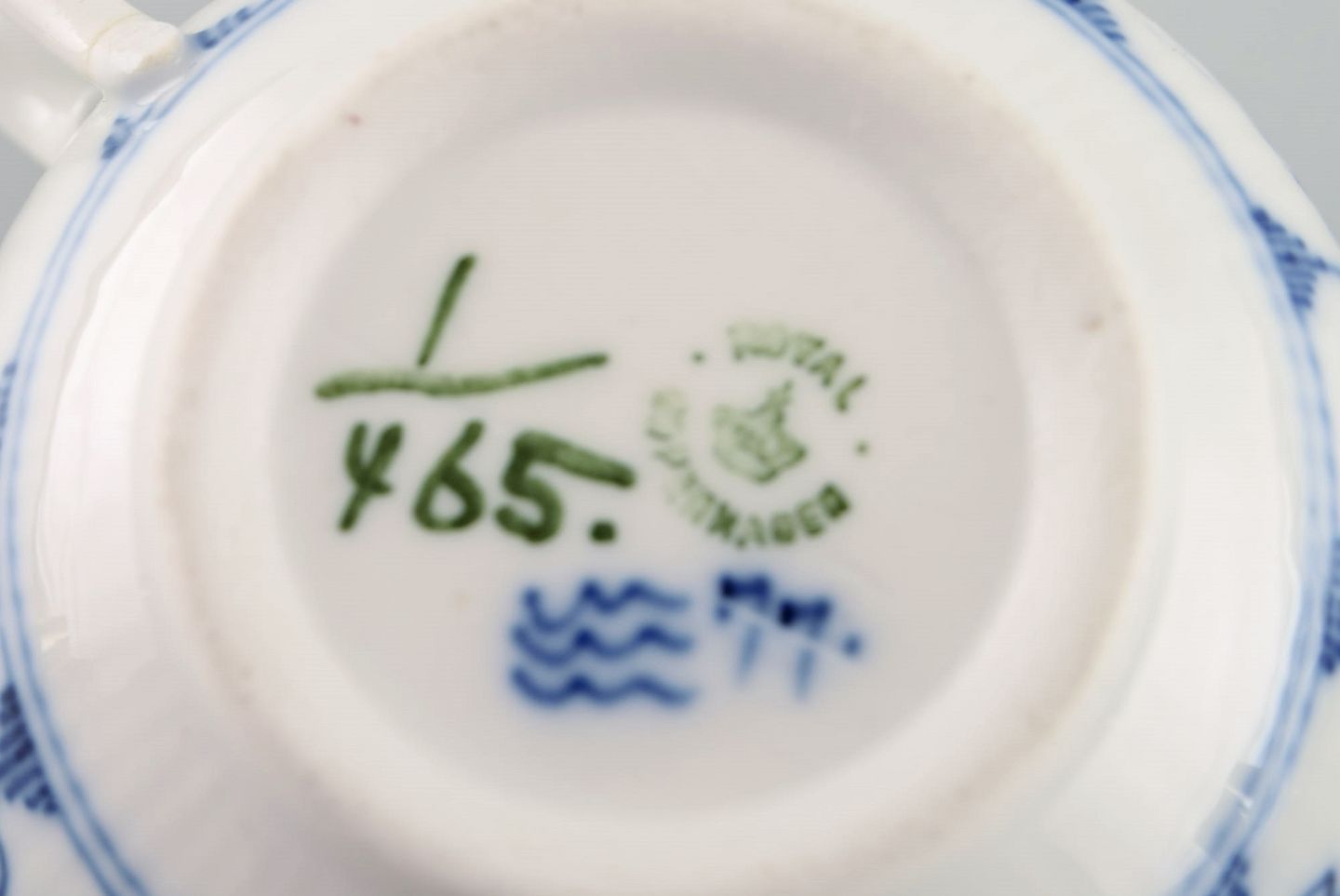 Antik Royal Copenhagen Musselmalet Riflet tekop med underkop. Modelnummer 1/465. Dateret 1889 - 1922.