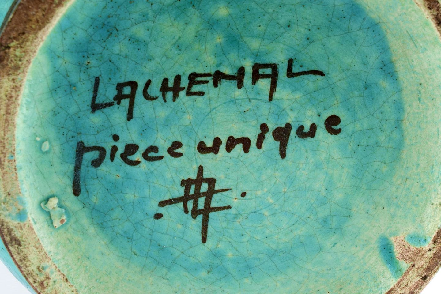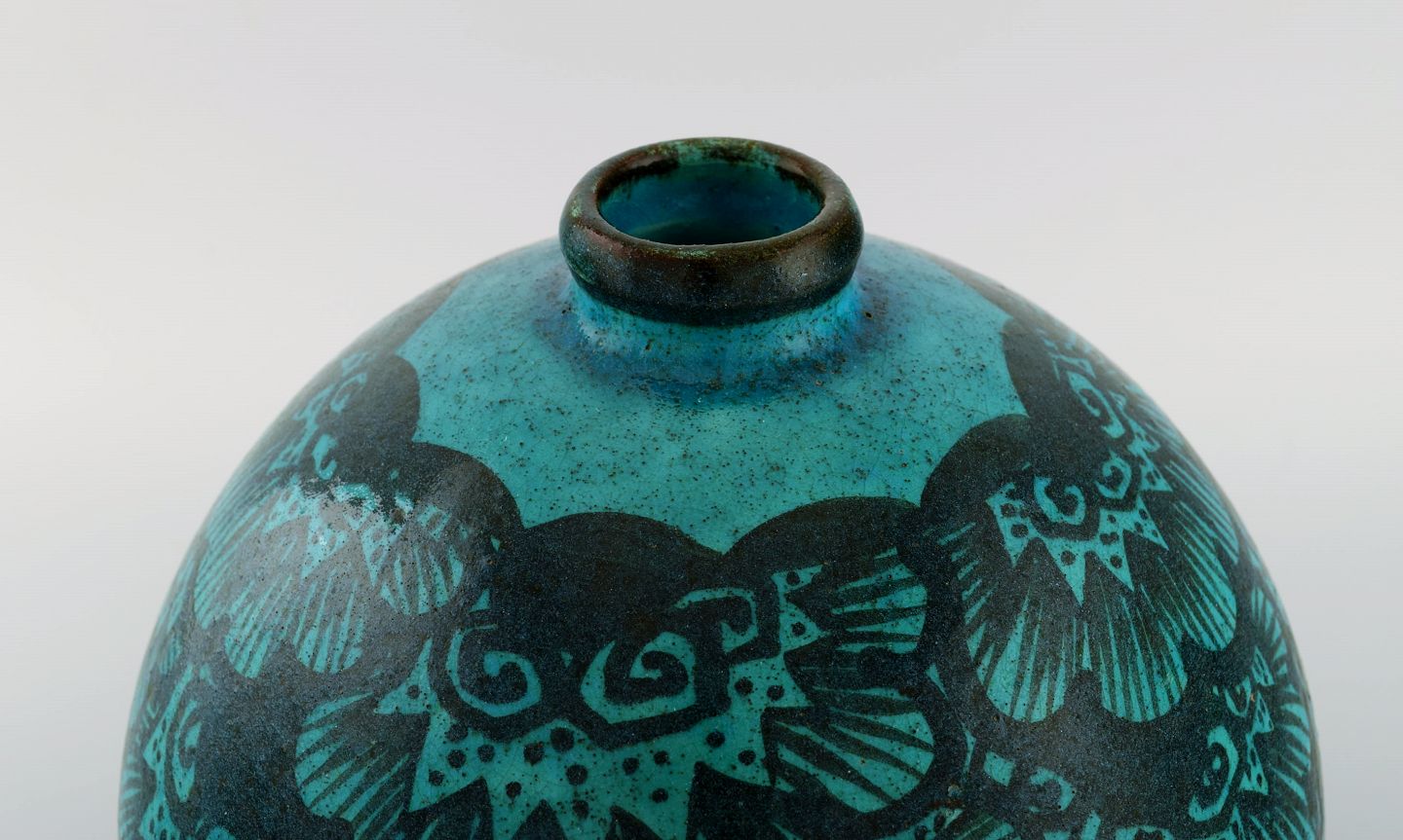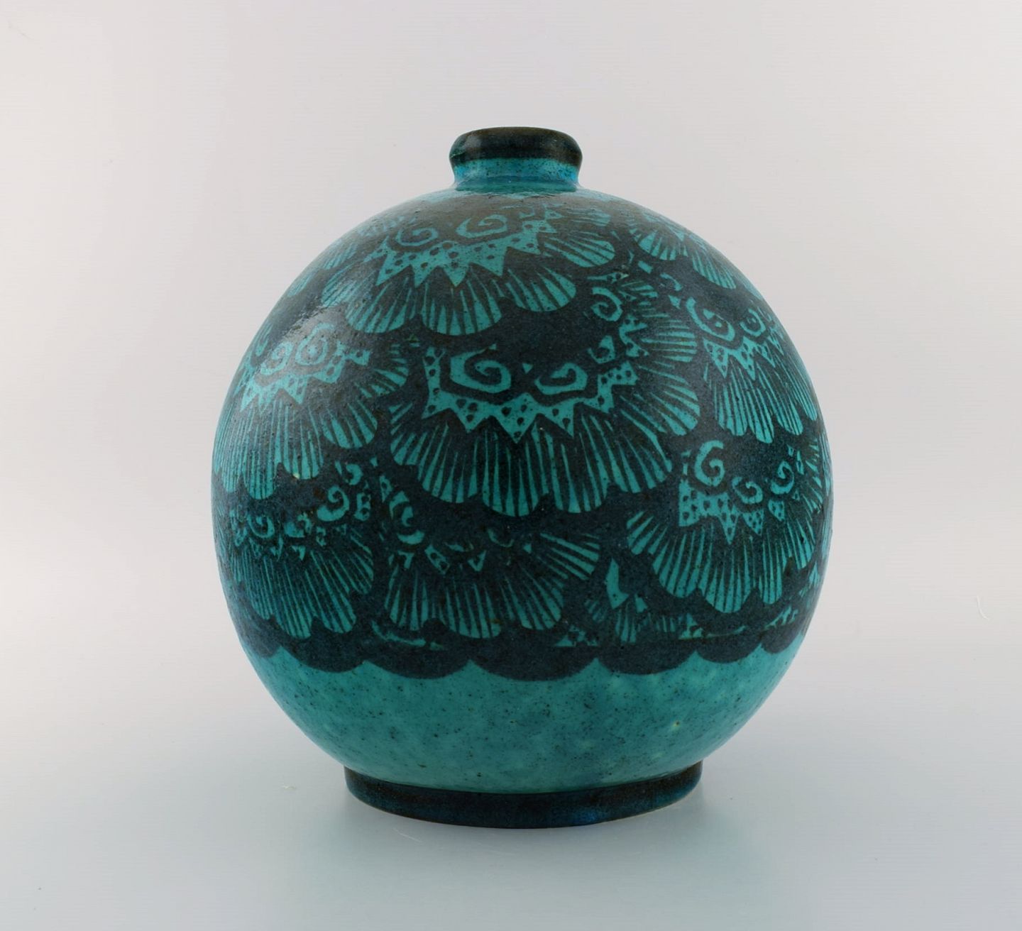 Edmond Lachenal (1855-1948), Frankrig. Stor rund unika vase i håndmalet glaseret keramik. Smuk glasur i turkis nuancer. 1920/30'erne.