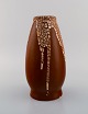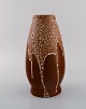 Leon Pointu (1879-1942), Frankrig. Stor art deco vase i glaseret stentøj. Smuk cremefarvet løbeglasur på rødbrun baggrund. 1930'erne. Måler: 25,5 x 13 cm. I flot stand. Signeret.