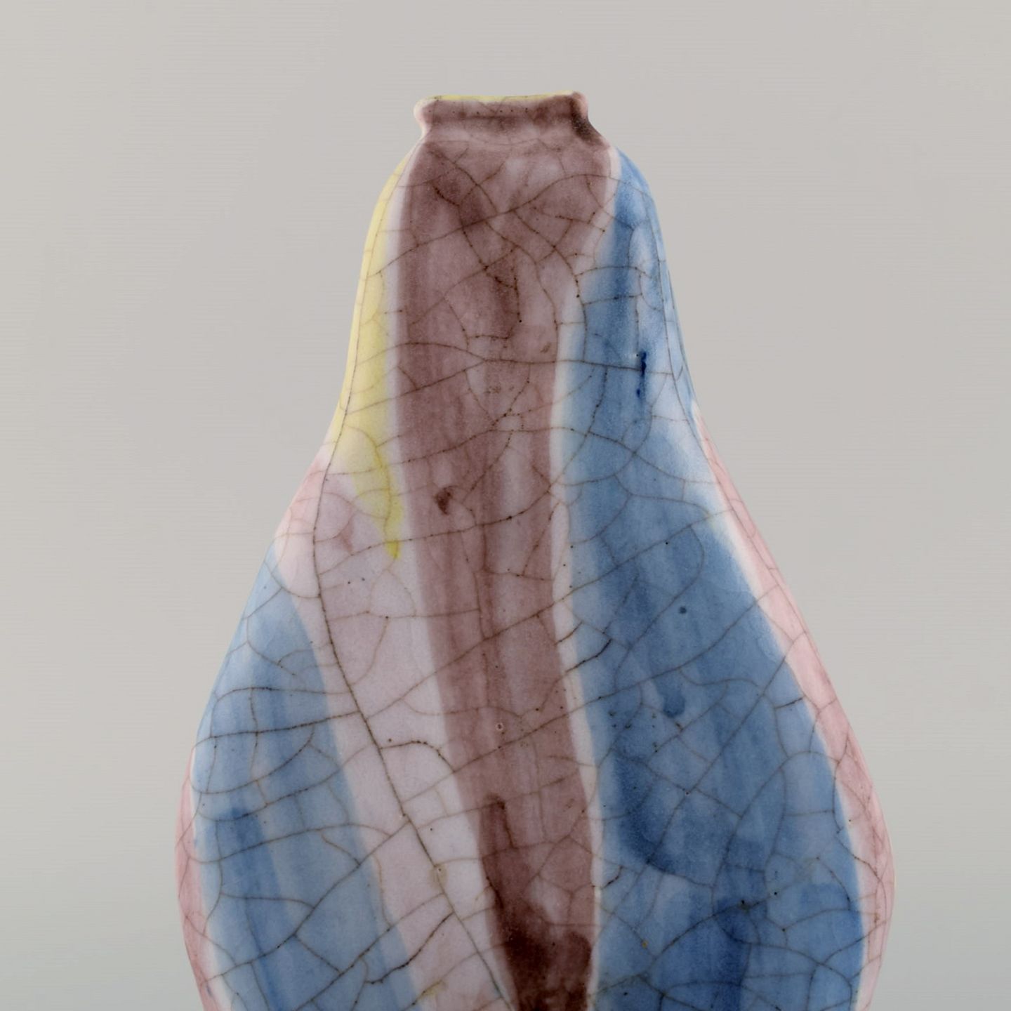 Marcello Fantoni (f.1915), Italien. Unika vase i glaseret keramik. Smuk polykrom glasur. 1960'erne. Måler: 21 x 12 cm. I flot stand. Signeret.