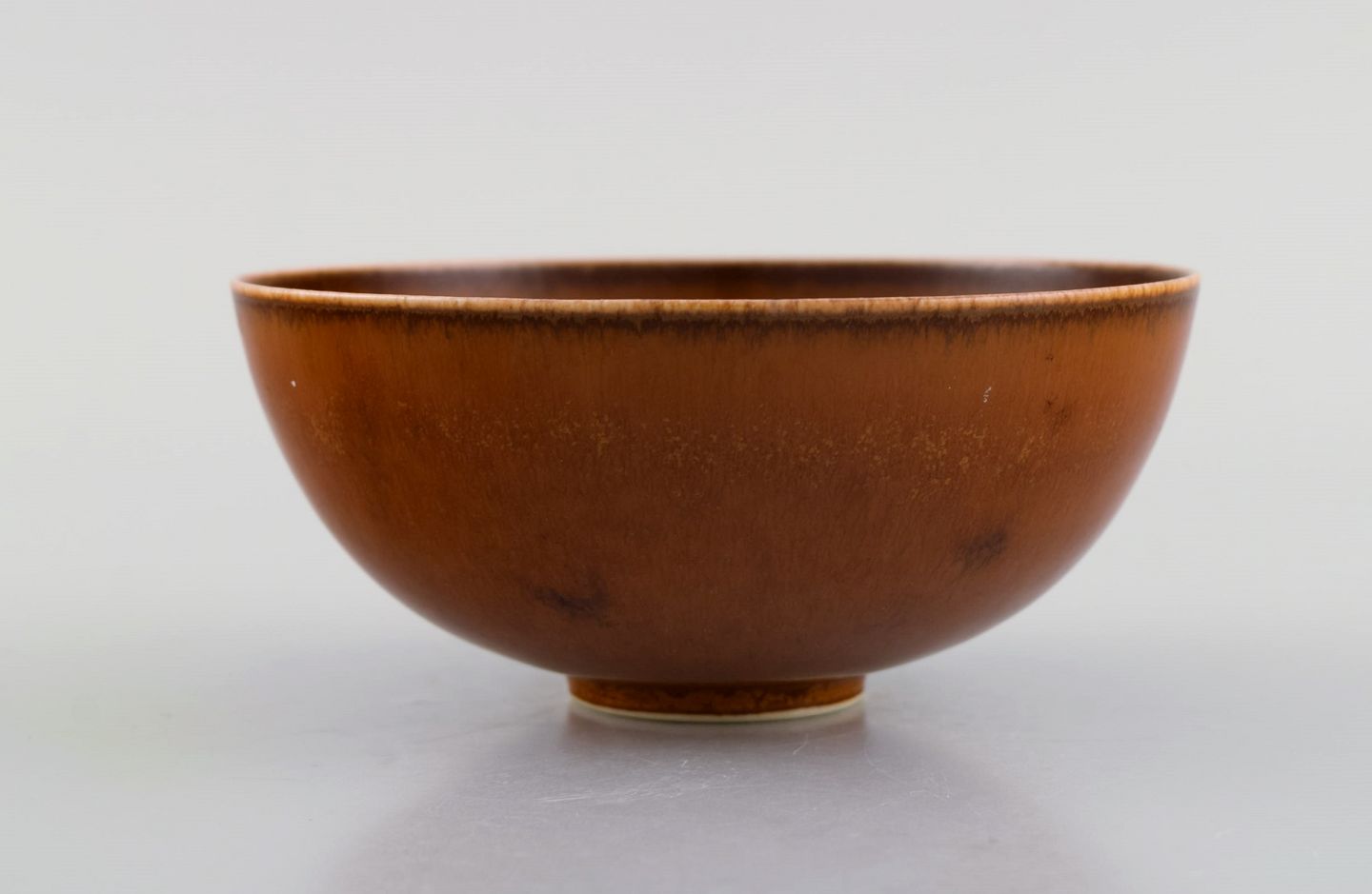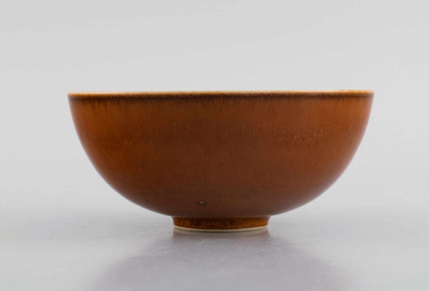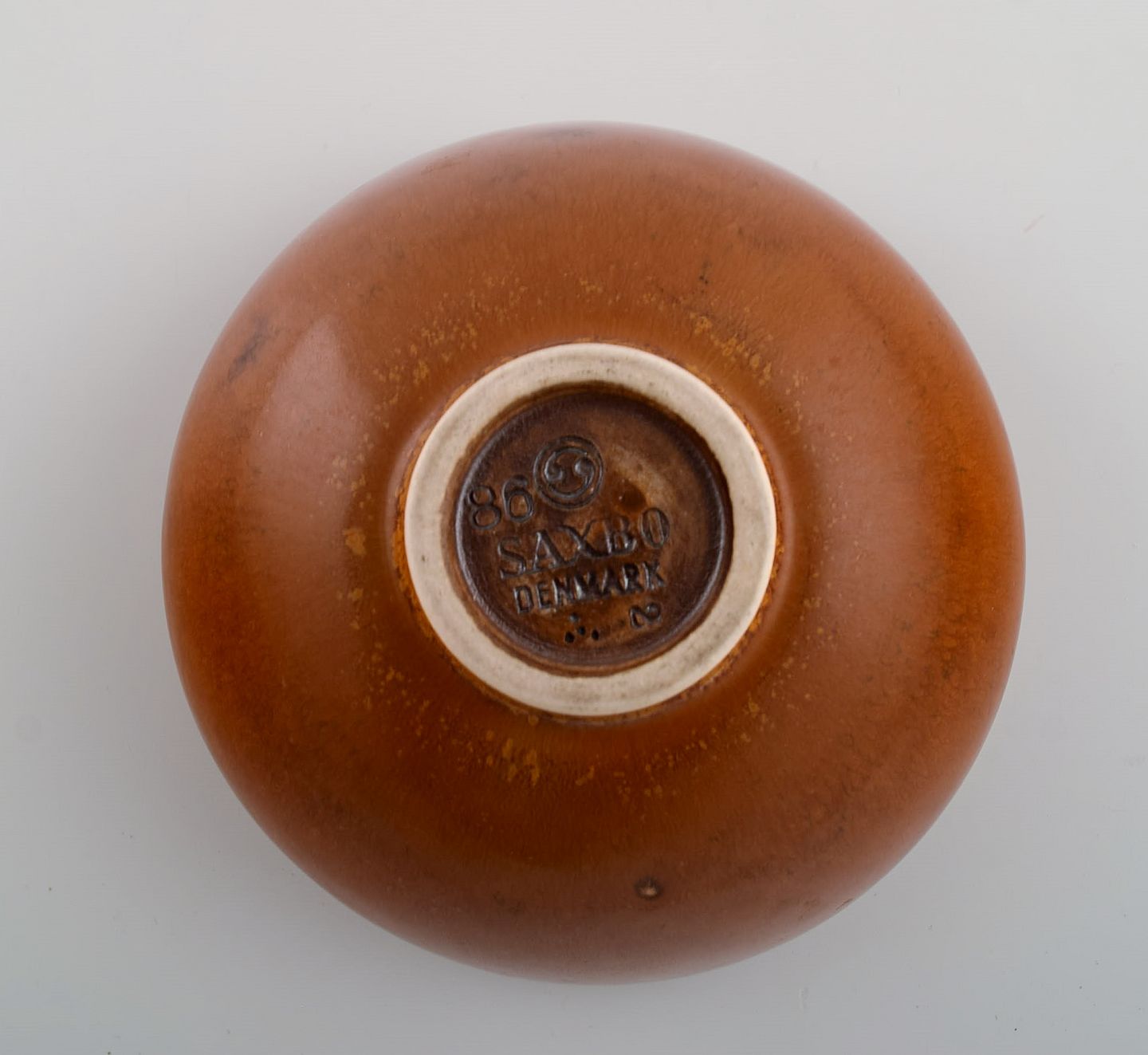 Saxbo skål i glaseret stentøj. Smuk glasur i brune nuancer. Midt 1900-tallet. Måler: 12 x 5,5 cm. I flot stand. Stemplet.