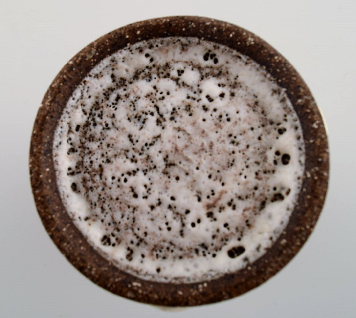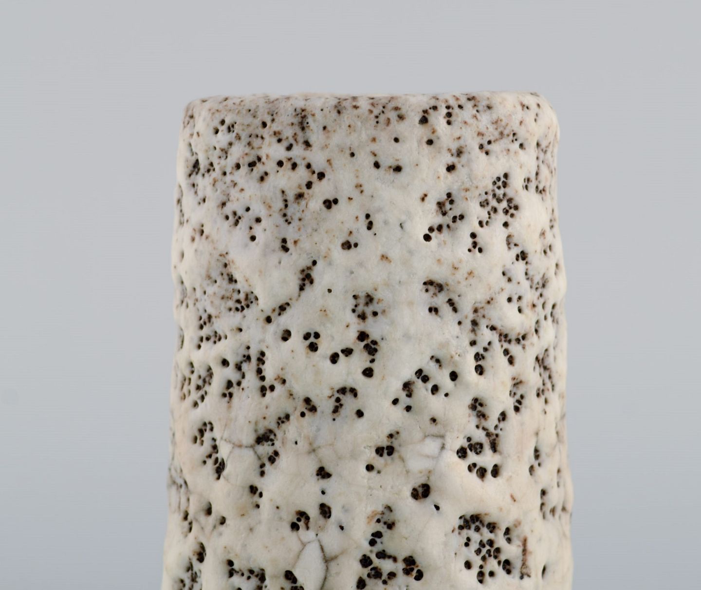 Lucie Rie (f. 1902, d. 1995), østrigsk-født britisk keramiker. Modernistisk unika vase i glaseret stentøj. Smuk glasur i creme nuancer. Eget værksted, ca. 1970.