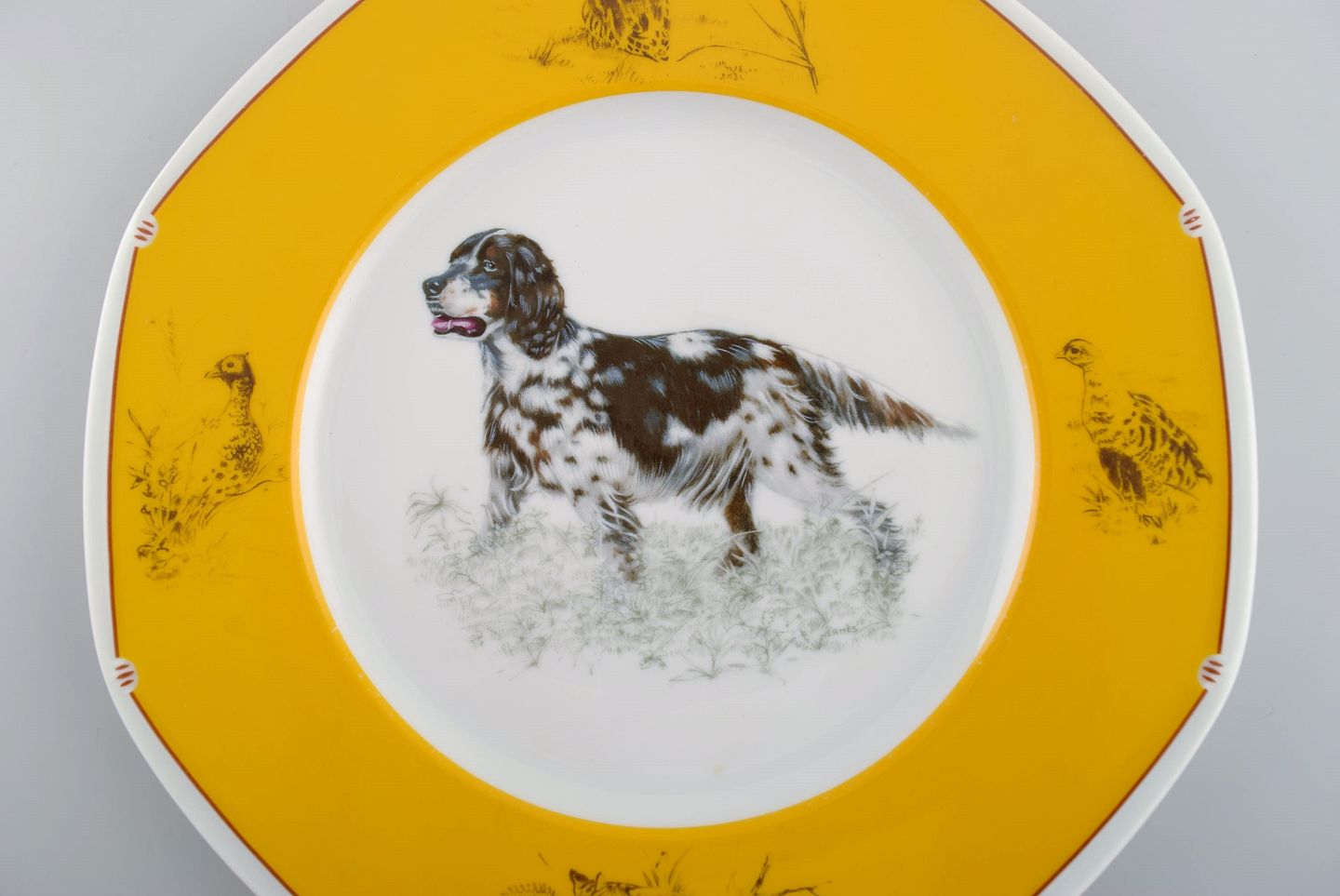 Hermès Chiens Courants & Chiens D'Arret tallerken i porcelæn. Engelsk setter. Sent 1900-tallet. Diameter: 26 cm. I flot stand. Stemplet.