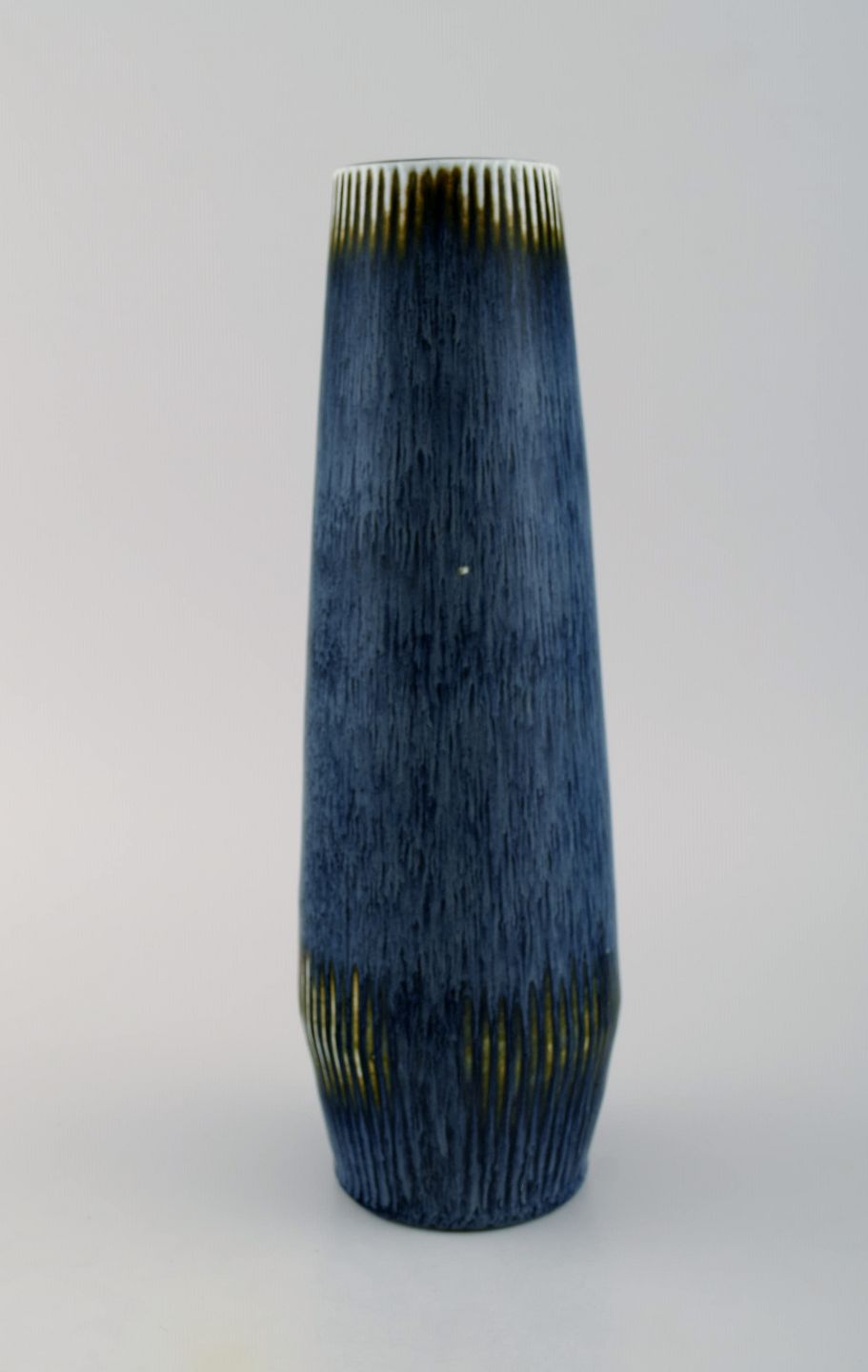 Carl Harry Stålhane for Rörstrand. Stor vase i glaseret keramik. Smuk blågrøn dobbeltglasur. Midt 1900-tallet. Måler: 27,5 x 9,5 cm. I flot stand. Stemplet. Lille glasurboble.