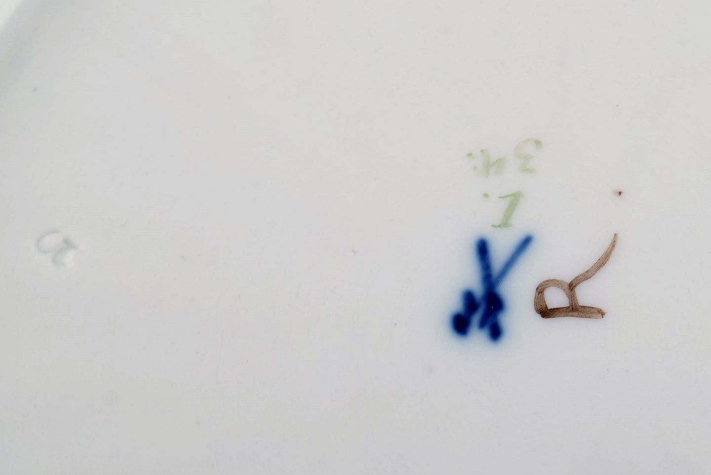 To antikke Meissen tallerkener i håndmalet porcelæn. Lysebrune blomster og gulddekoration. Tidligt 1900-tallet. Diameter: 21,5 cm. I flot stand. Stemplet. 1. Sortering.
