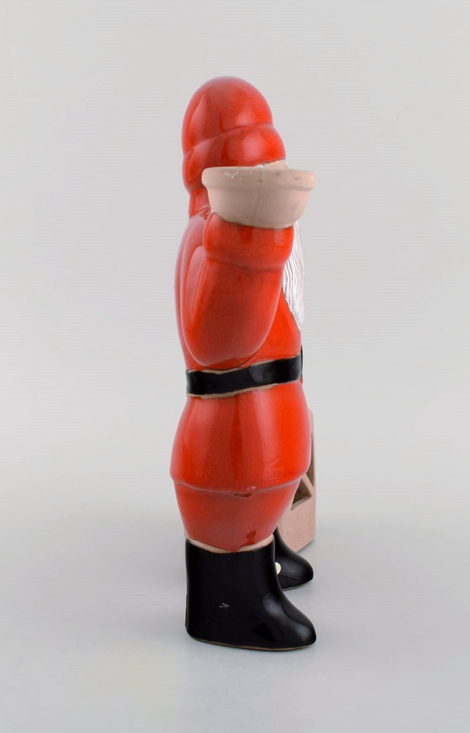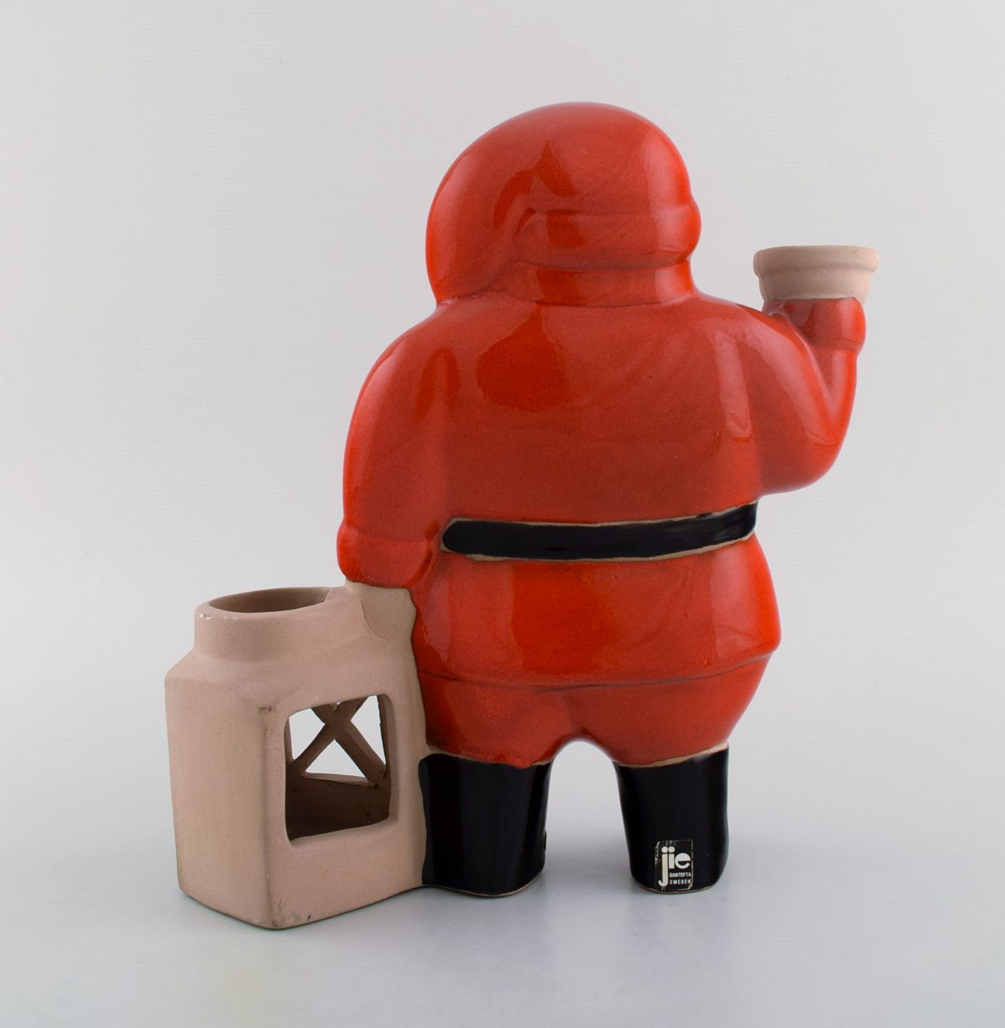 Lisa Larson for Jie. Stor sjælden julemand i glaseret keramik med lanterne til fyrfadslys. Svensk design, sent 1900-tallet. Måler: 25 x 24,5 cm. I flot stand. Stemplet.