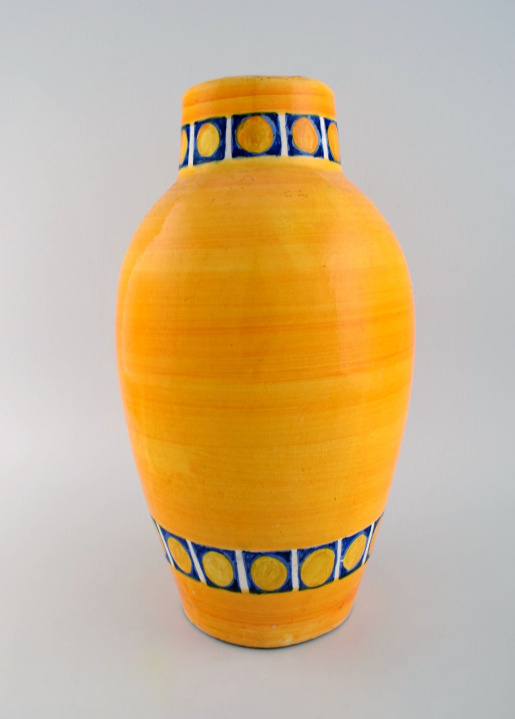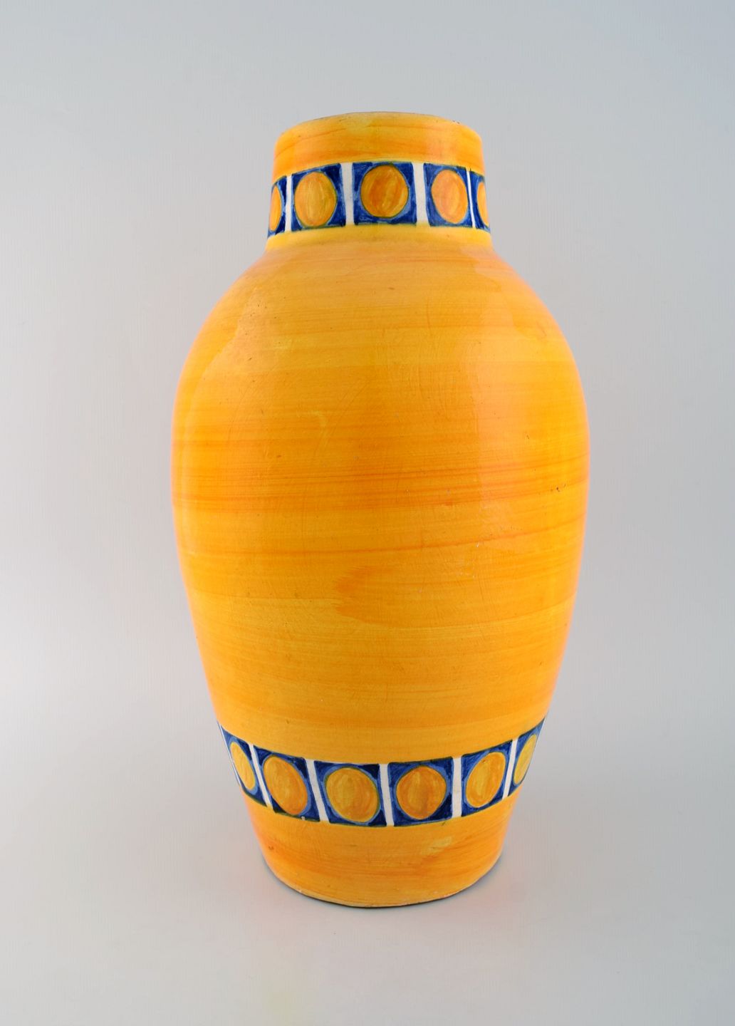Poterie Serghini, Marokko. Stor unika vase i håndmalet glaseret stentøj. Smuk glasur i gule nuancer. Midt 1900-tallet. Måler: 39 x 21,5 cm. I flot stand. Signeret.