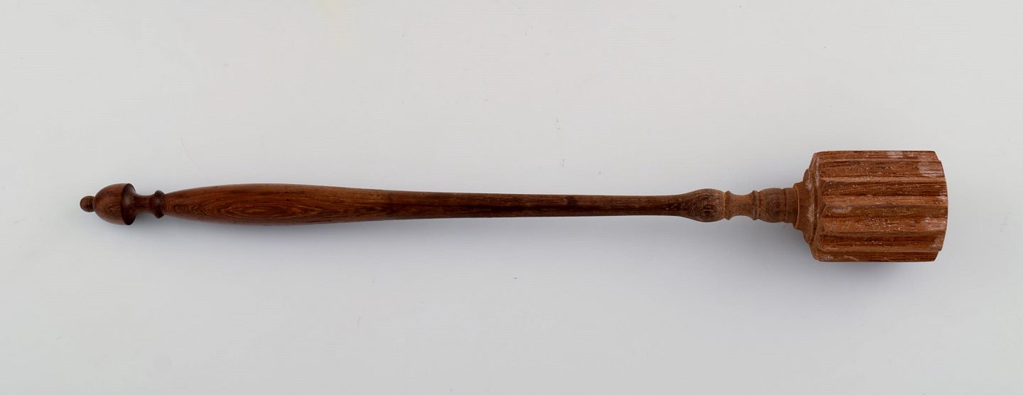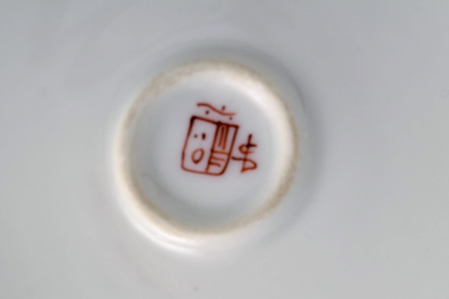Antik kinesisk chokoladekande i håndmalet porcelæn med blomster og gulddekoration. Hank og rørepind i drejet træ. 17/1800-tallet.