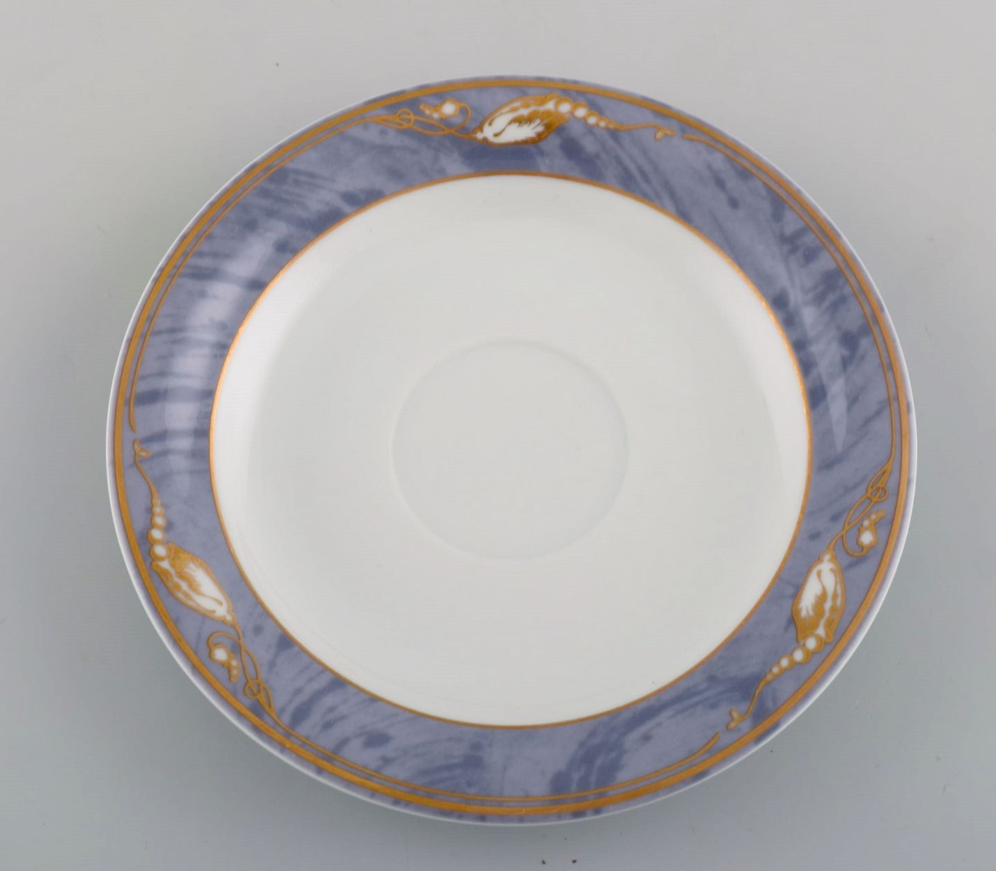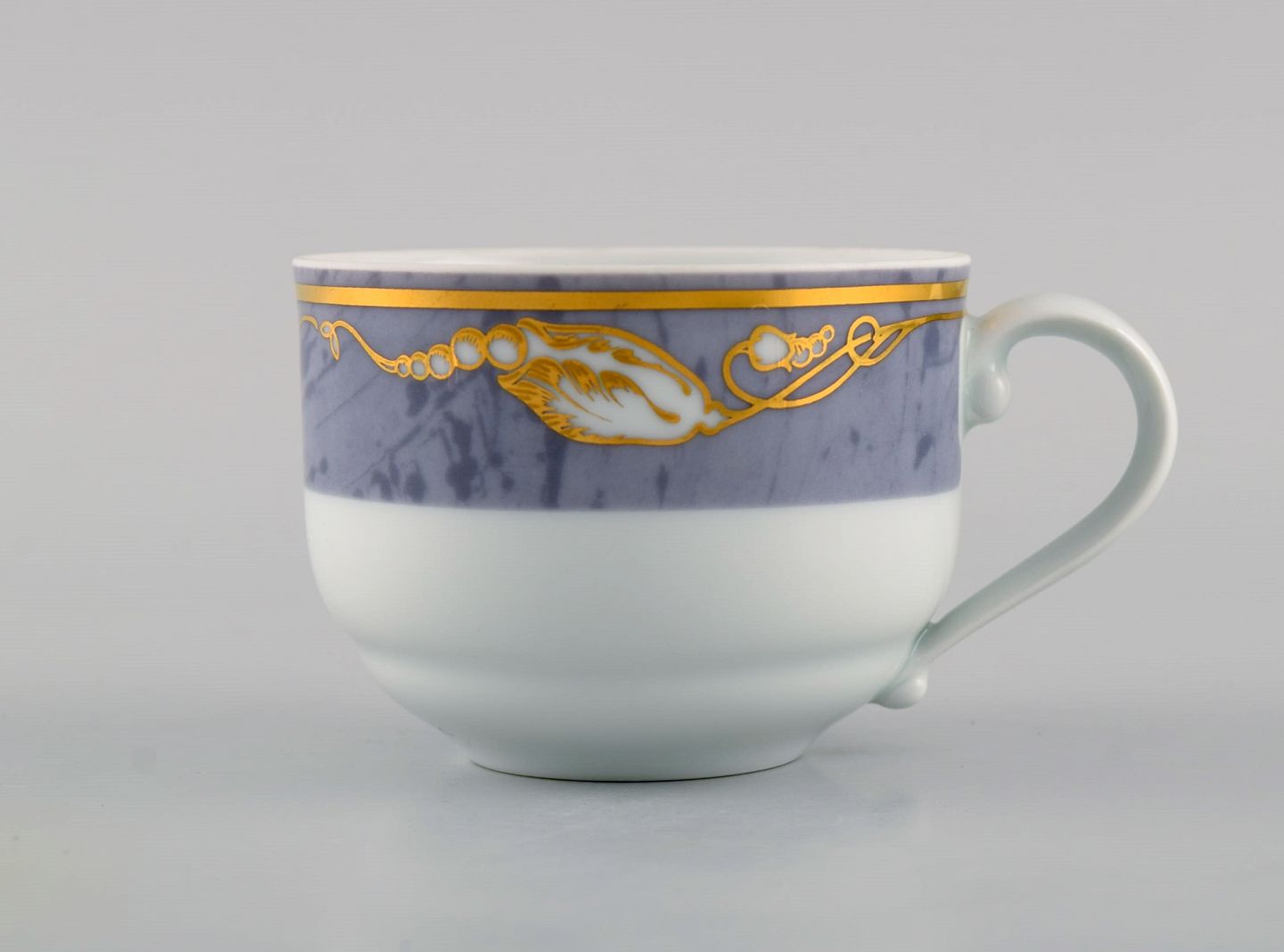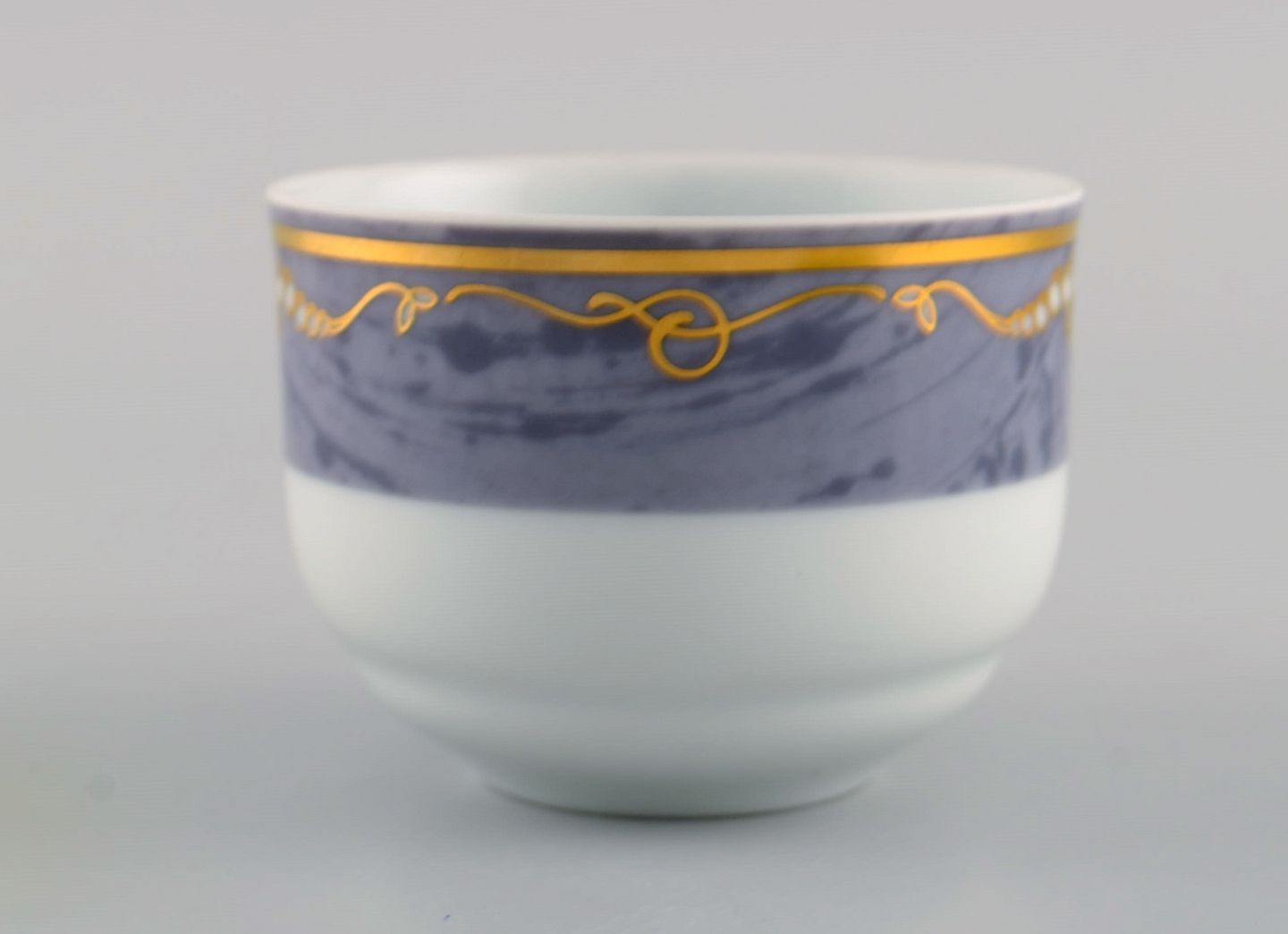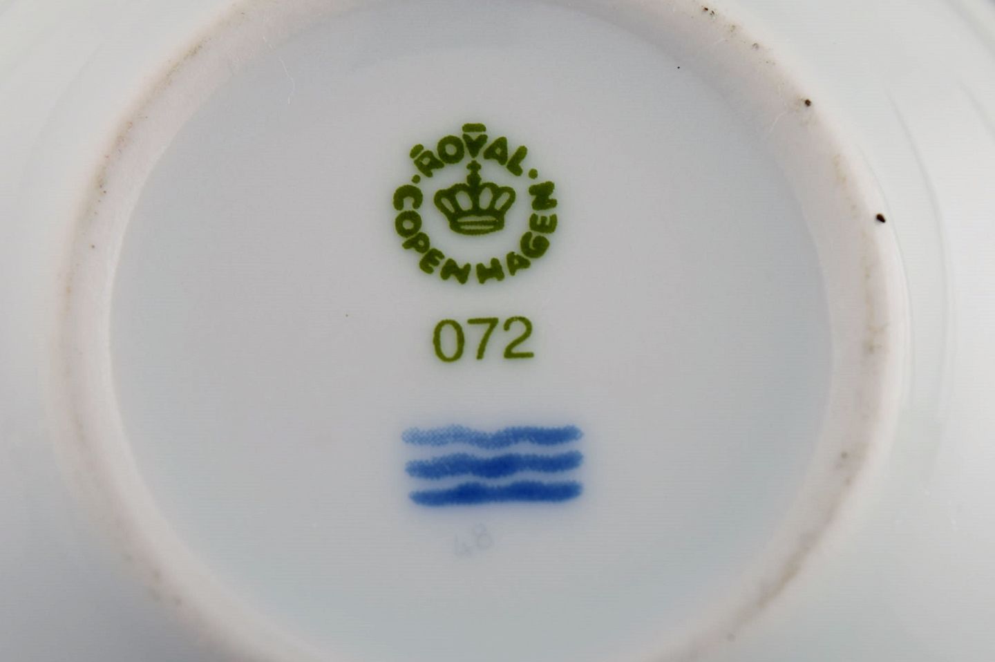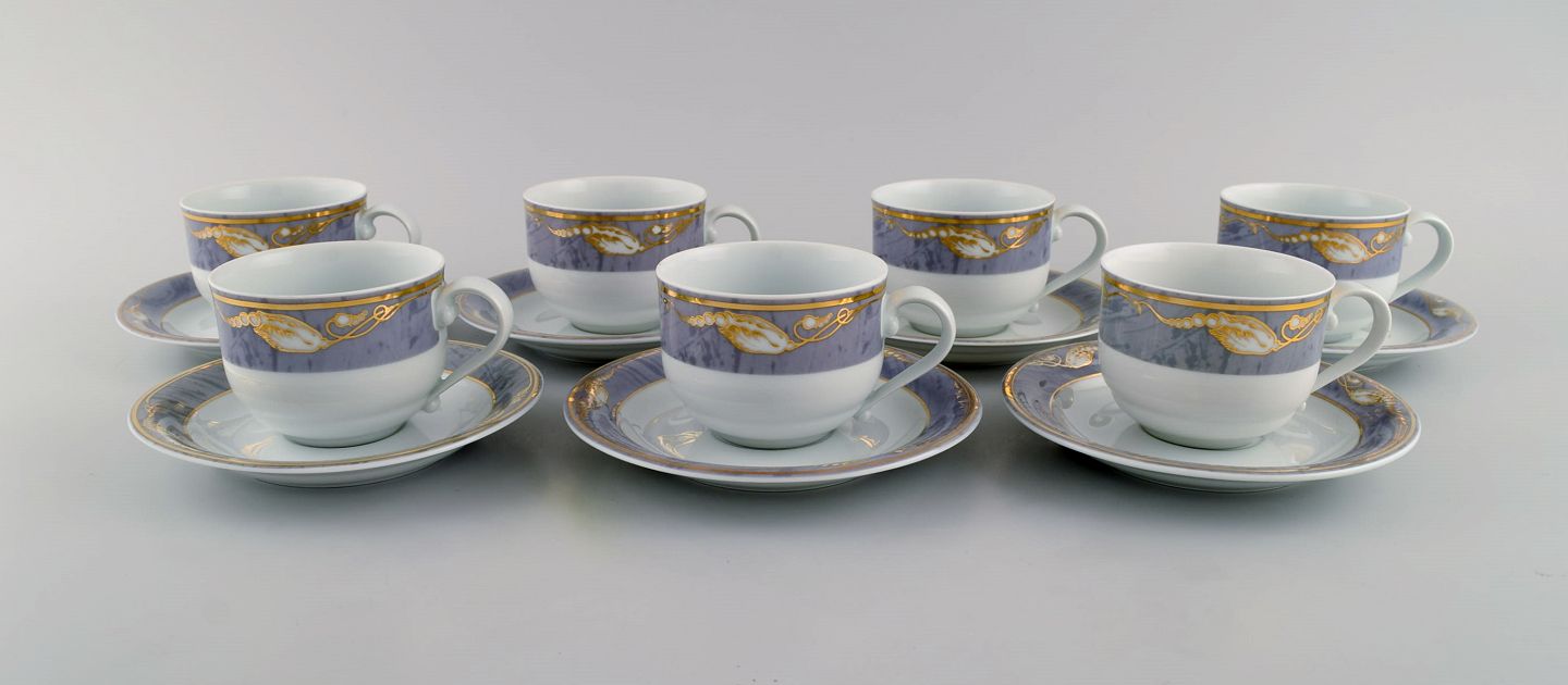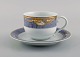 Syv Royal Copenhagen Grå Magnolia kaffekopper med underkopper i porcelæn. Sent 1900-tallet.