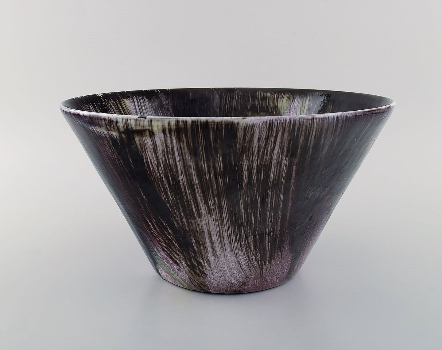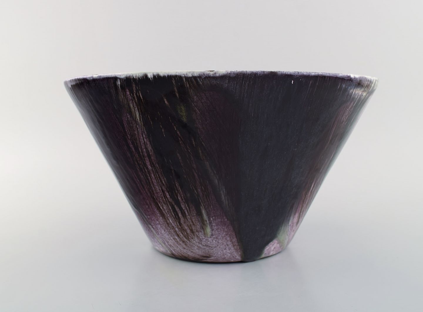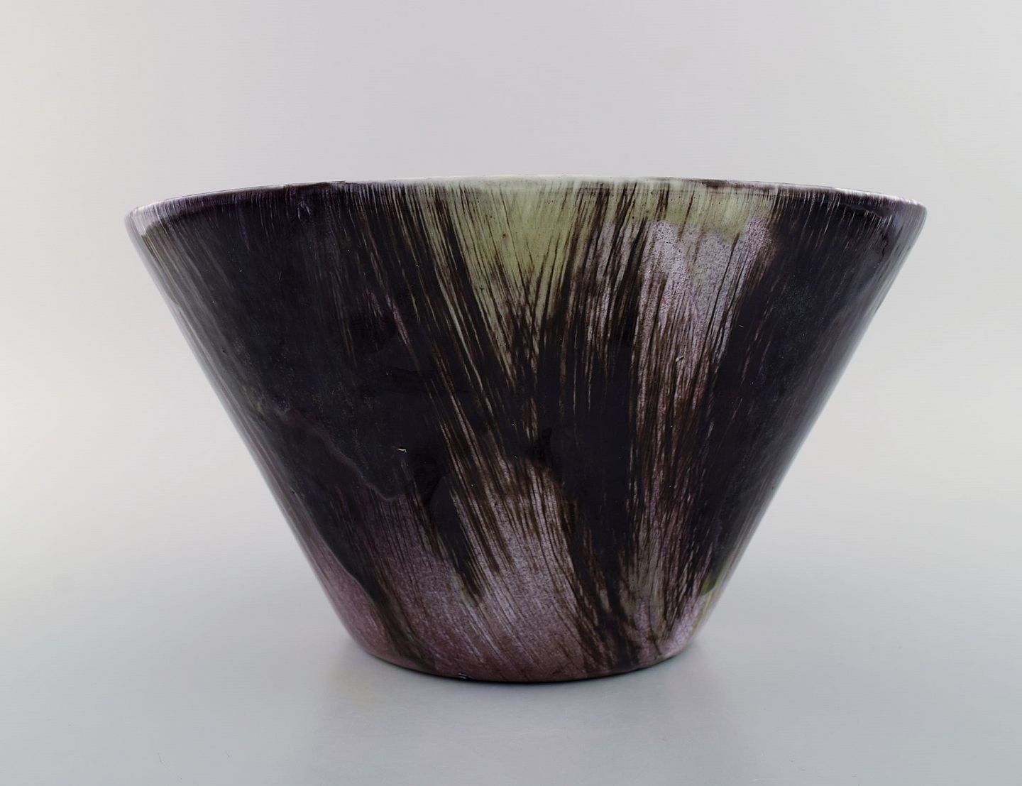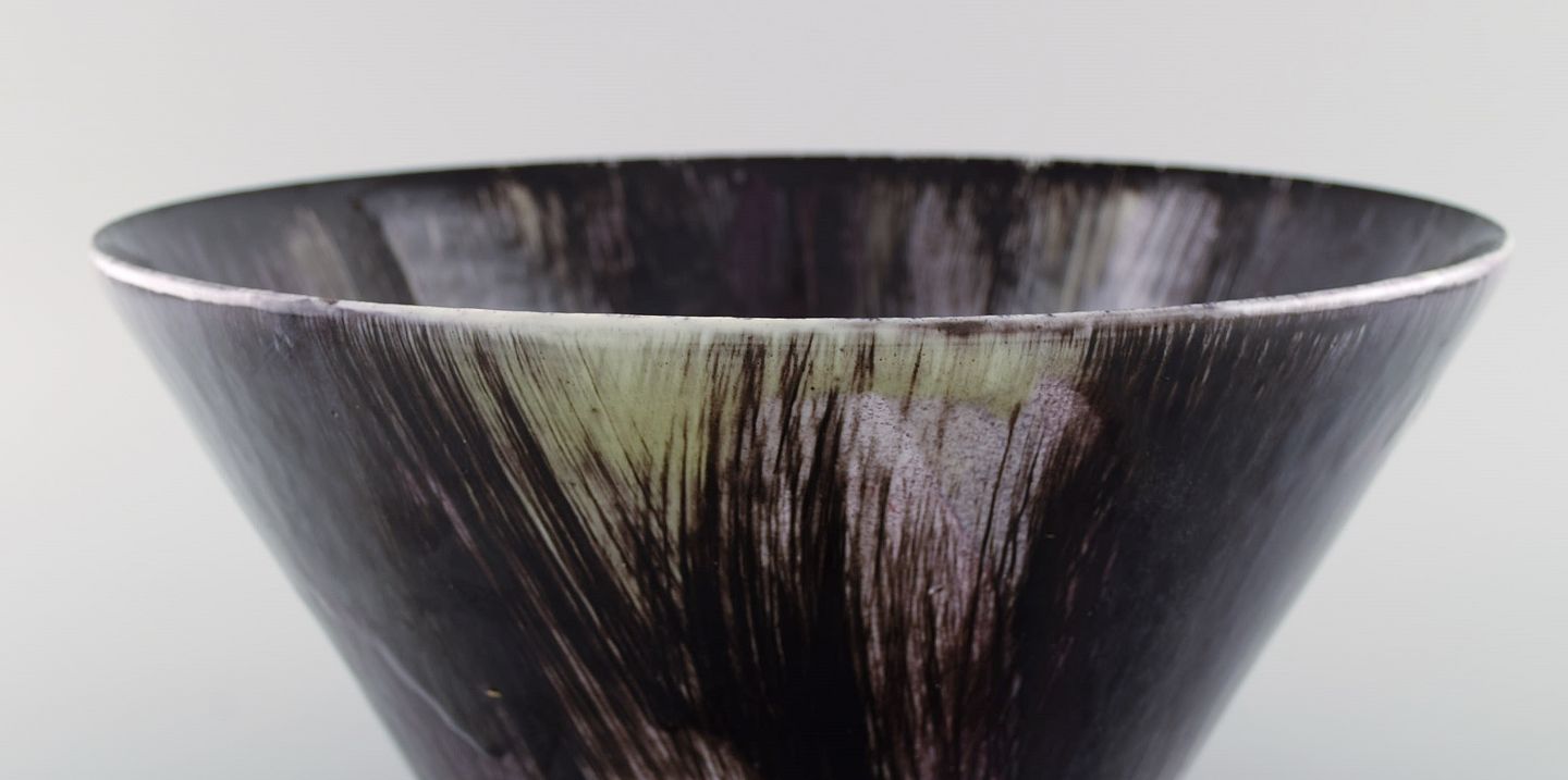 Mari Simmulson (1911-2000) for Upsala-Ekeby. Stor skål i håndmalet glaseret stentøj. Midt 1900-tallet. Måler: 29 x 16 cm. I flot stand. Stemplet.