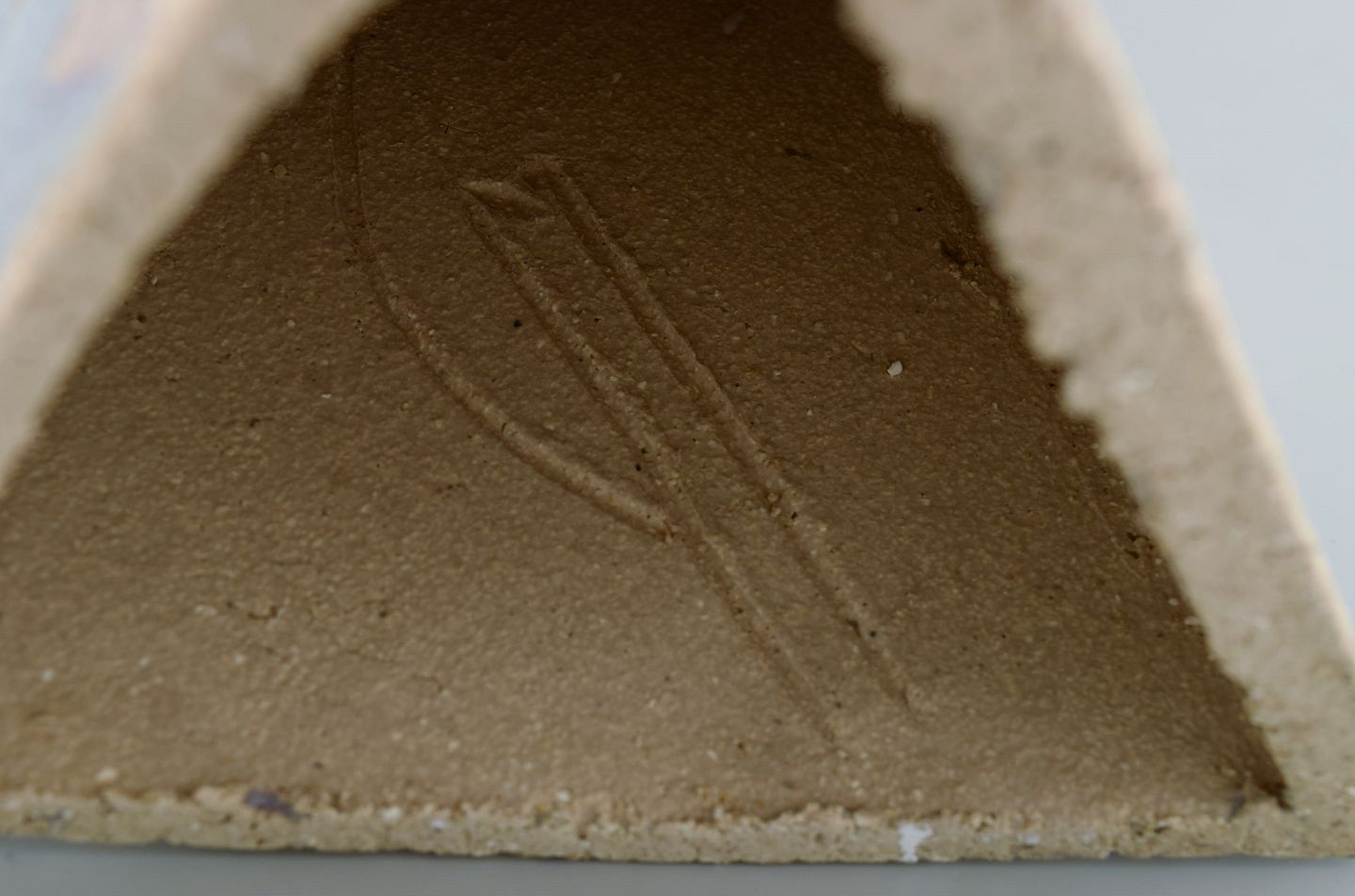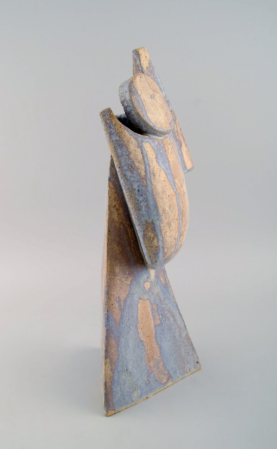 Christina Muff, dansk samtidskeramiker (f. 1971). Stor kubistisk unika skulptur i gyldent stentøjsler med silkemat glasur. "Blow us a kiss".