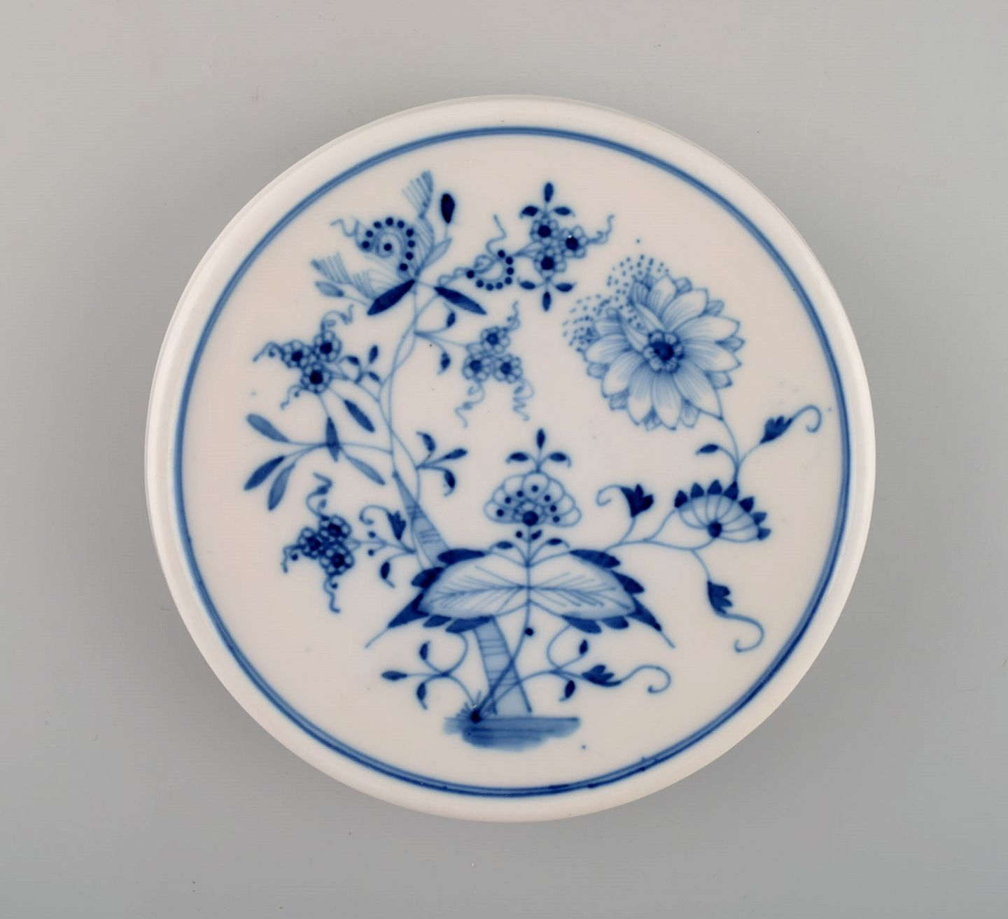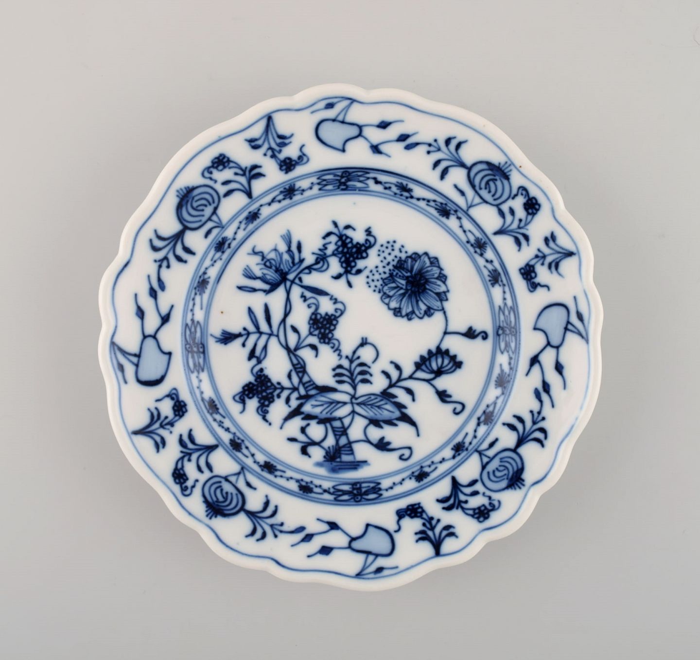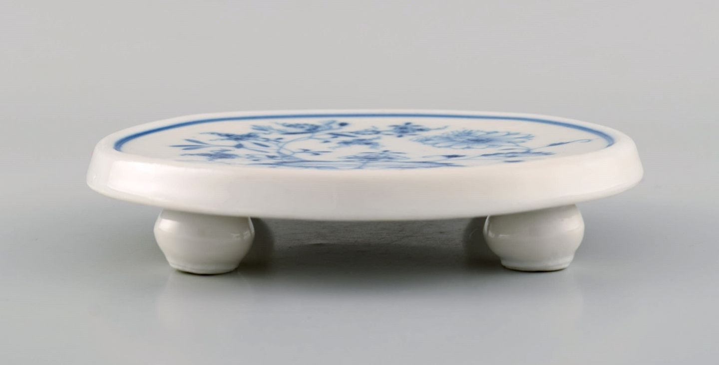 Stadt Meissen løgmønstret. Bordskåner og tre tallerkener. Midt 1900-tallet. Tallerken diameter: 17,5 cm Bordskåner diameter: 14,5 cm. I flot stand. Stemplet.