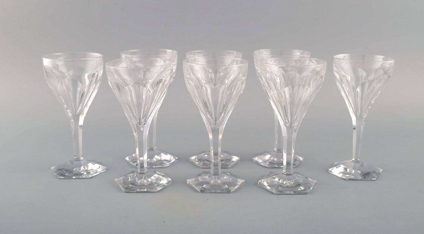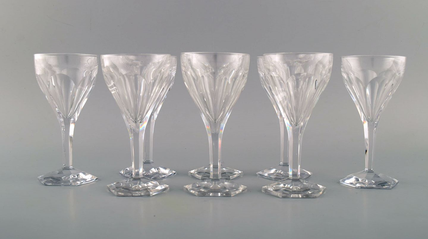 Val St. Lambert, Belgien. Otte Legagneux hvidvinsglas i klart mundblæst krystalglas. Midt 1900-tallet.