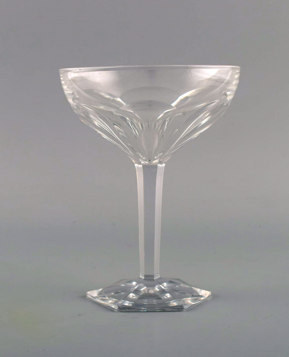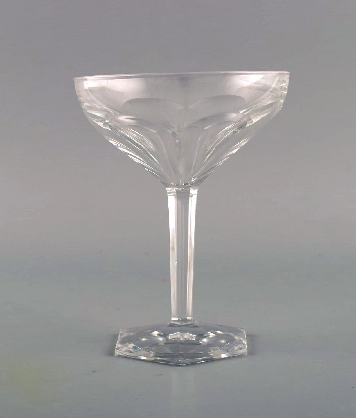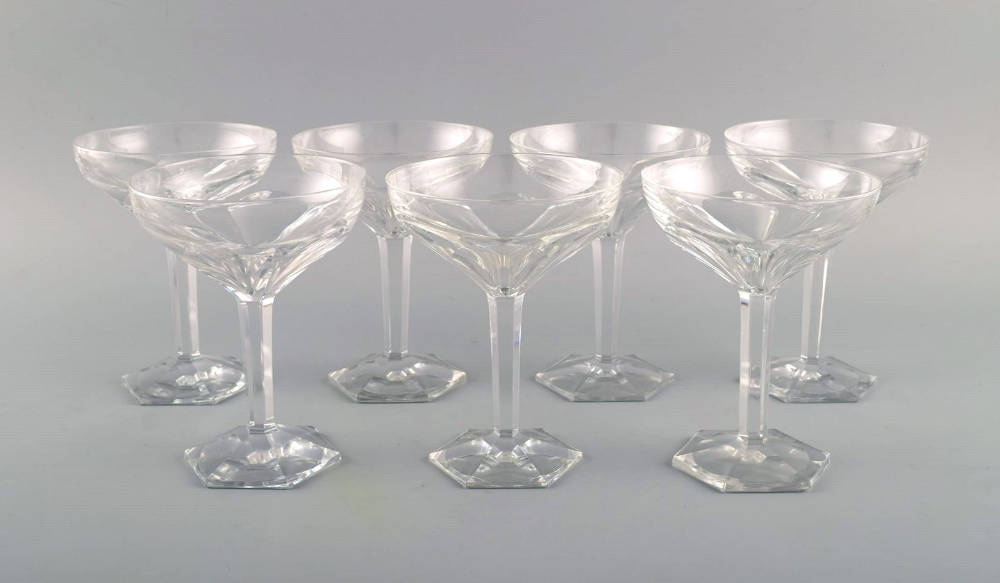 Val St. Lambert, Belgium. Seven Legagneux champagne bowls in clear mouth-blown crystal glass. Mid-20th century. Measures: 14 x 10.8 cm In perfect condition.
