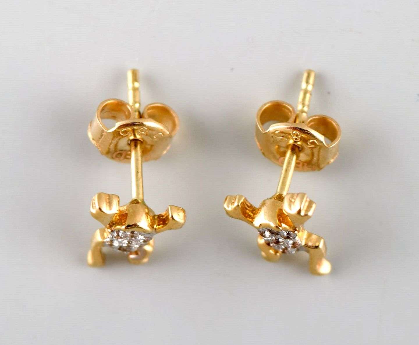 Dansk guldsmed. Et par ørestikker i 14 karat guld prydet med lyse diamanter. Sent 1900-tallet.