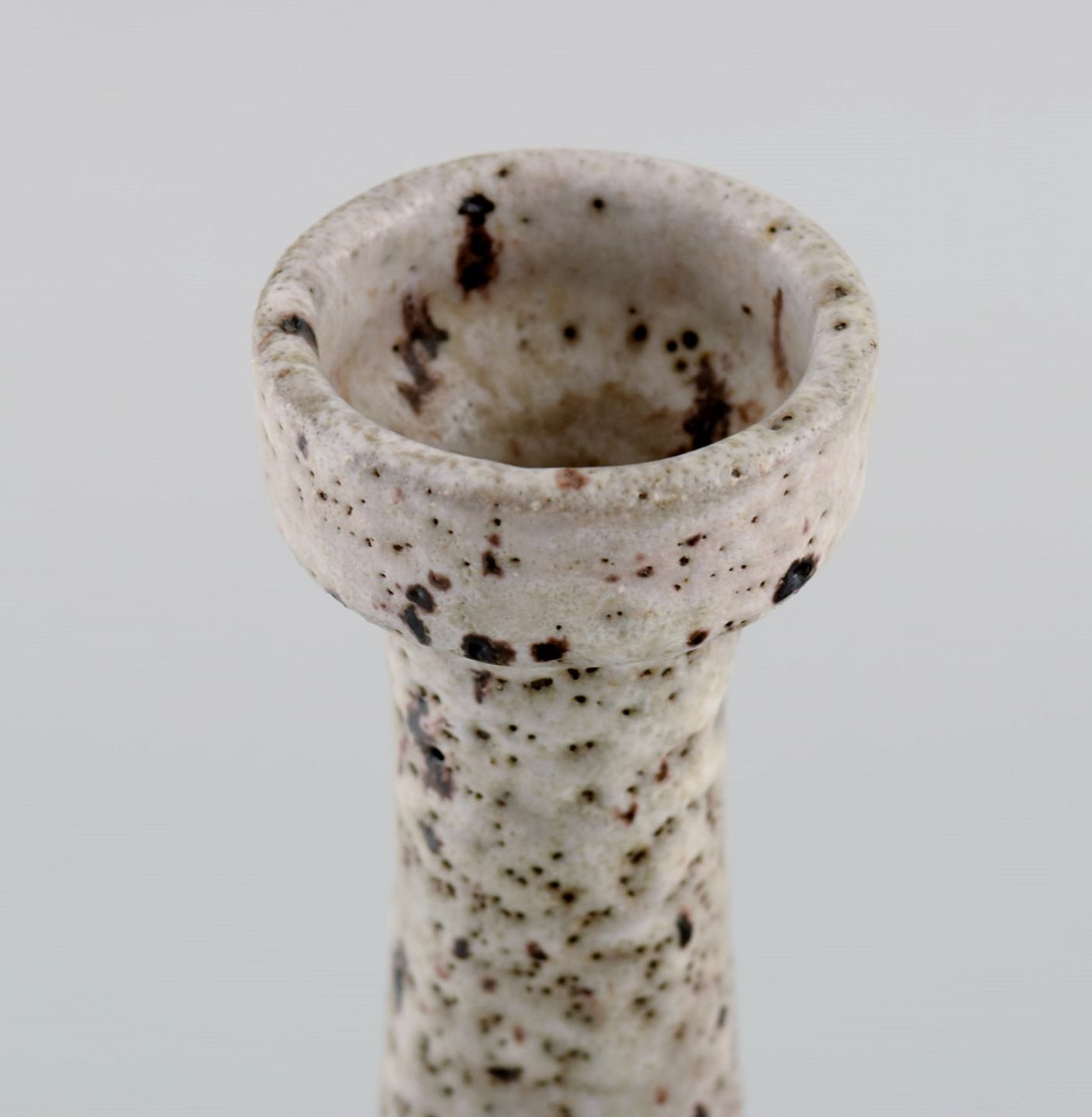 Lucie Rie (f. 1902, d. 1995), østrigsk-født britisk keramiker. Modernistisk unika vase i glaseret stentøj. Smuk glasur i lyse jordnuancer. Rillet korpus. Eget værksted, ca. 1970.
