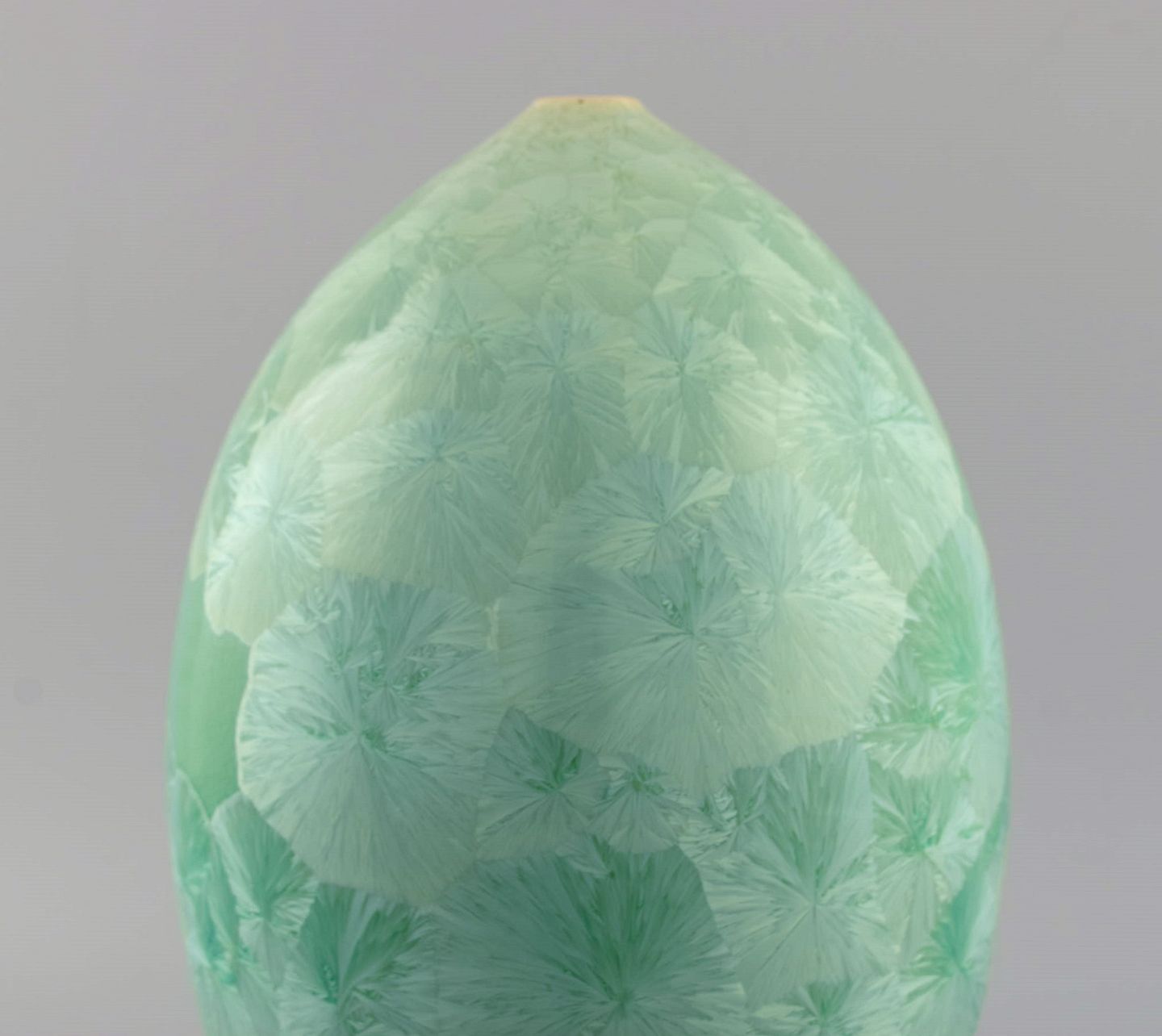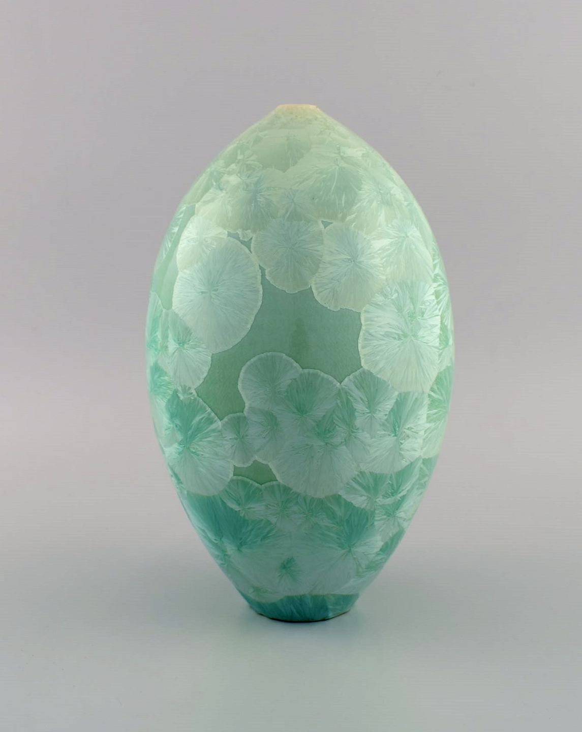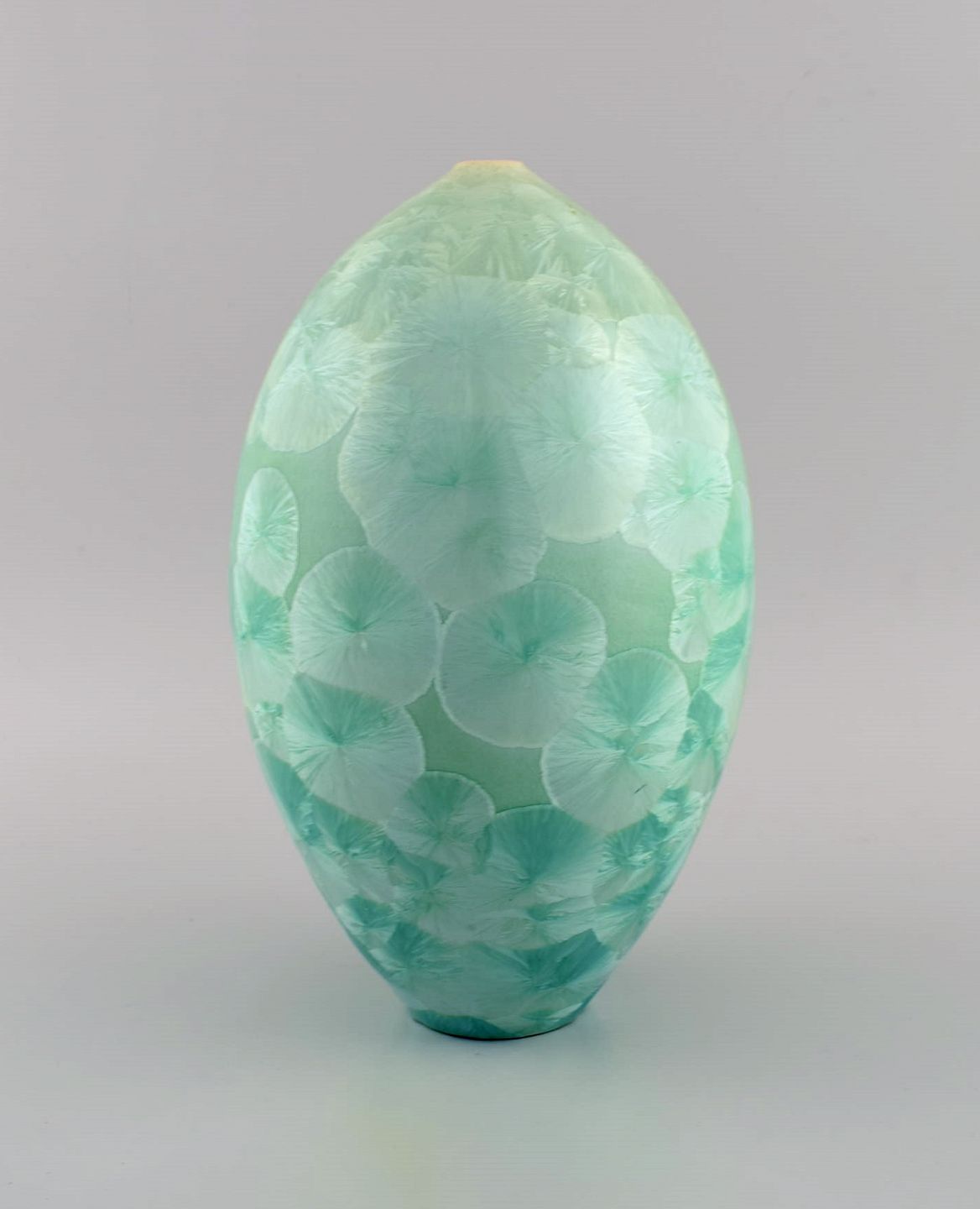 Europæisk studiokeramiker. Vase i glaseret stentøj. Smuk krystalglasur i turkis nuancer. Sent 1900-tallet.