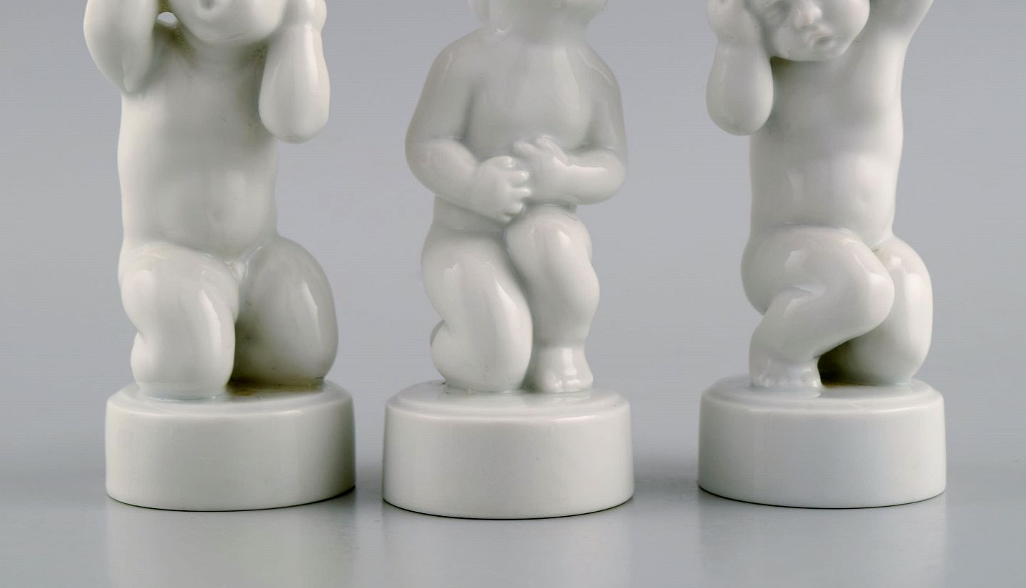 Svend Lindhart for Bing & Grøndahl. Tre blanc de chine figurer. Hovedpine, ørepine og mavepine. Midt 1900-tallet. Største måler: 11,5 x 4,7 cm. I flot stand. Stemplet.