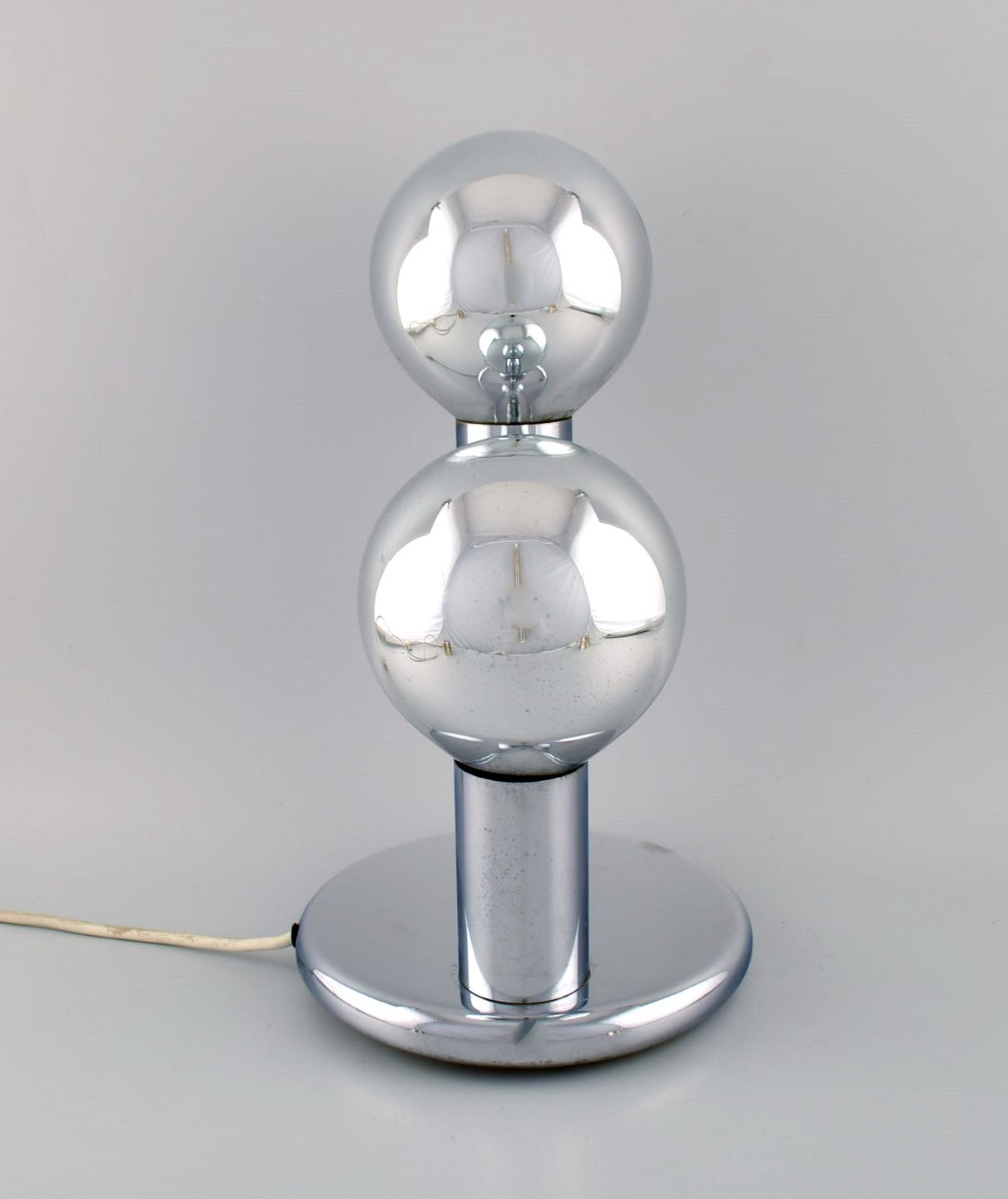Studio Tetrarch for Valenti. Vintage Pistillino bordlampe. Italiensk design, 1970'erne. Måler: 34,5 x 24 cm. I flot stand. Minimalt aldersbetinget brugspræg. Materiale: Forkromet plast.