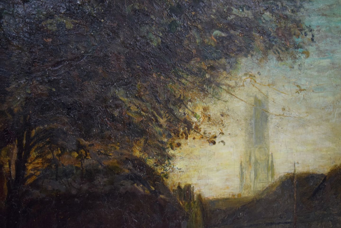 Flora Macdonald Reid (1860-1940), britisk kunstner. Olie på lærred. Bysceneri. Sent 1800-tallet.