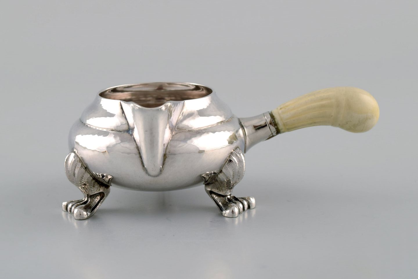 Bestående af mokka- og flødekande med håndtag i elfenben samt sukkerskål med sukkertang.