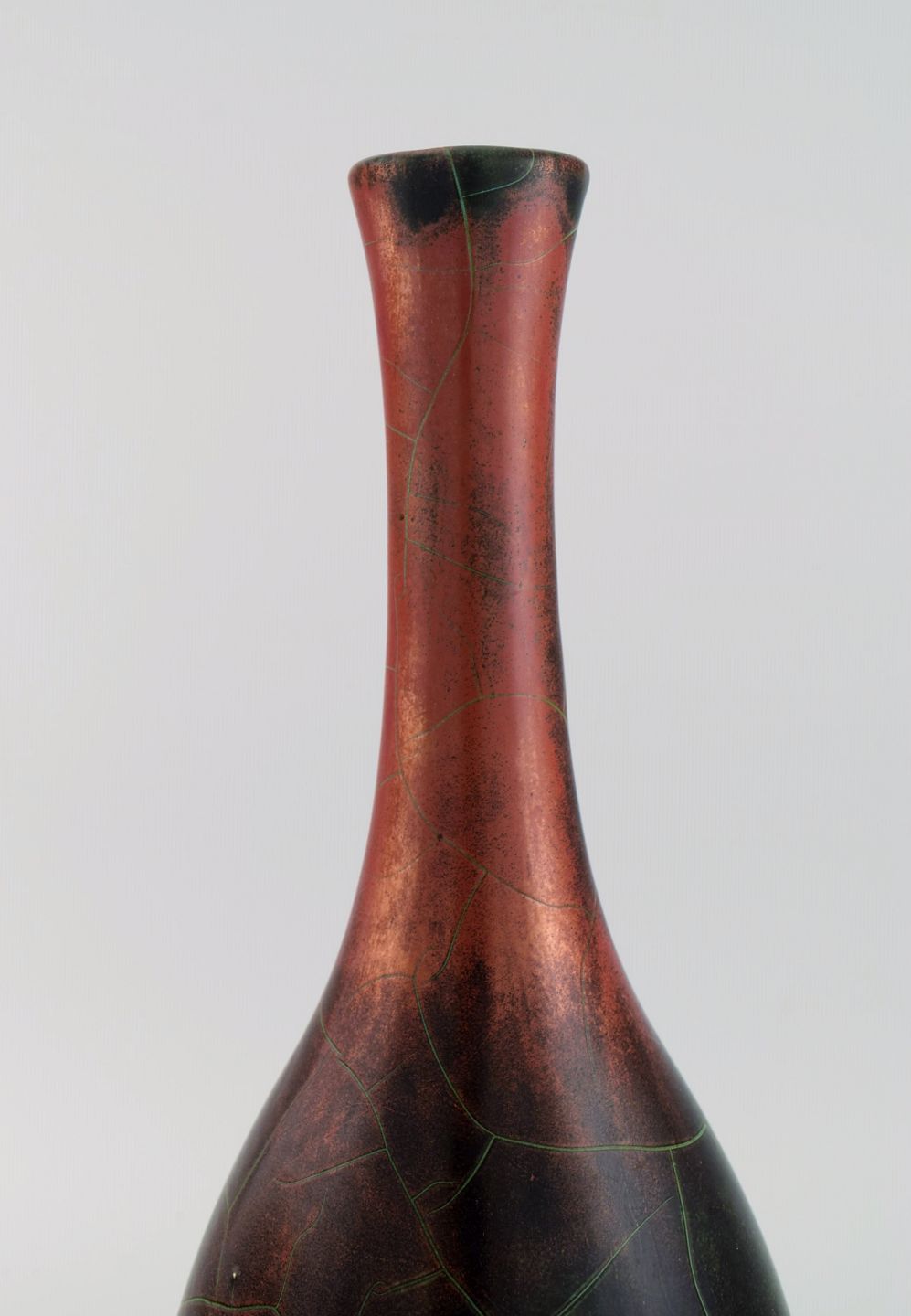 Richard Uhlemeyer, Tyskland. Vase i glaseret keramik. Smuk krakeleret glasur i mørkerøde og turkis nuancer. 1950'erne. Måler: 40 x 17 cm. I flot stand. Stemplet.