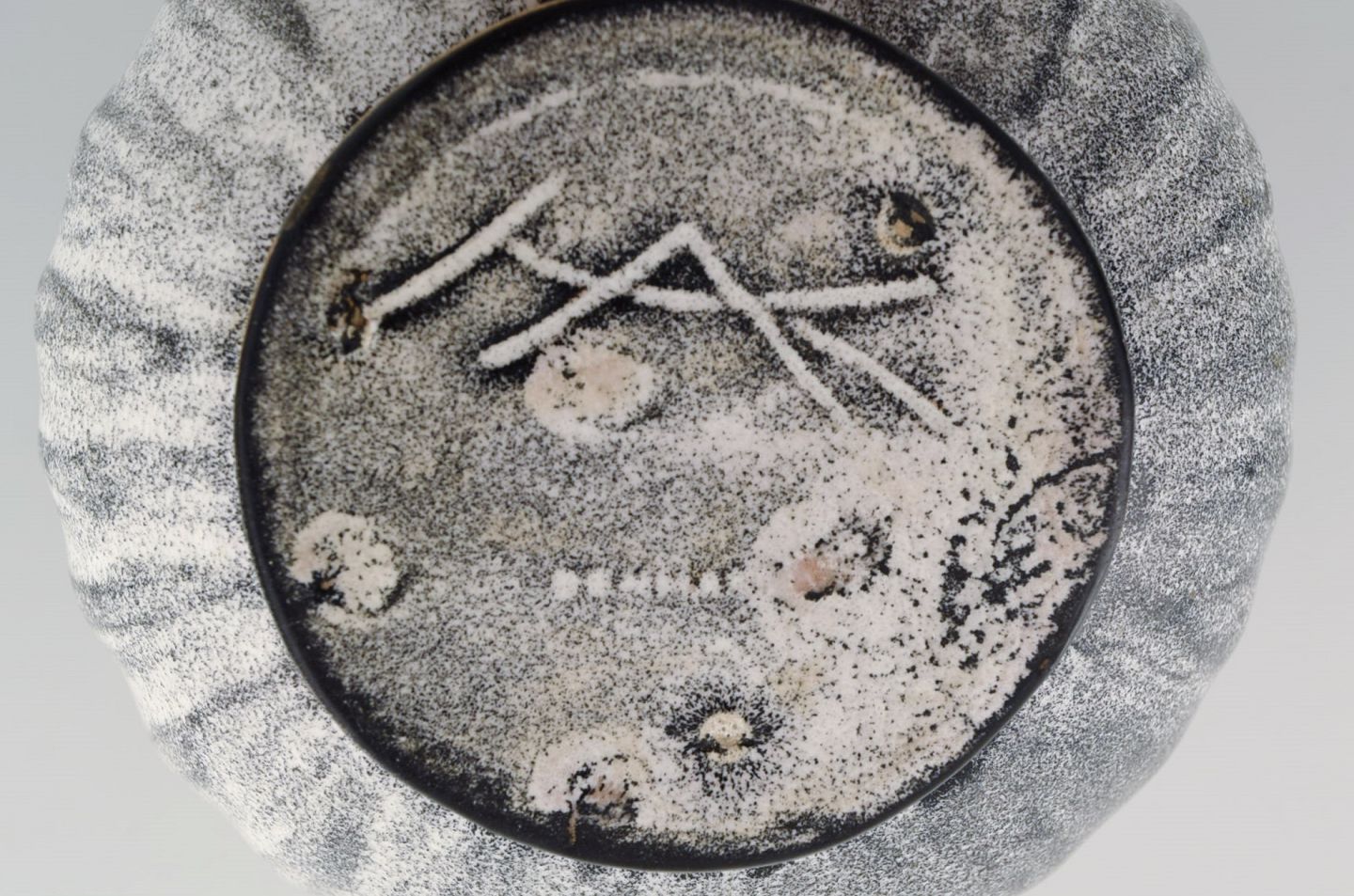 Svend Hammershøi for Kähler, HAK. Løgformet vase i glaseret stentøj. Smuk gråsort dobbeltglasur. 1930/40'erne. Måler: 15 x 15 cm. Stemplet. I flot stand.