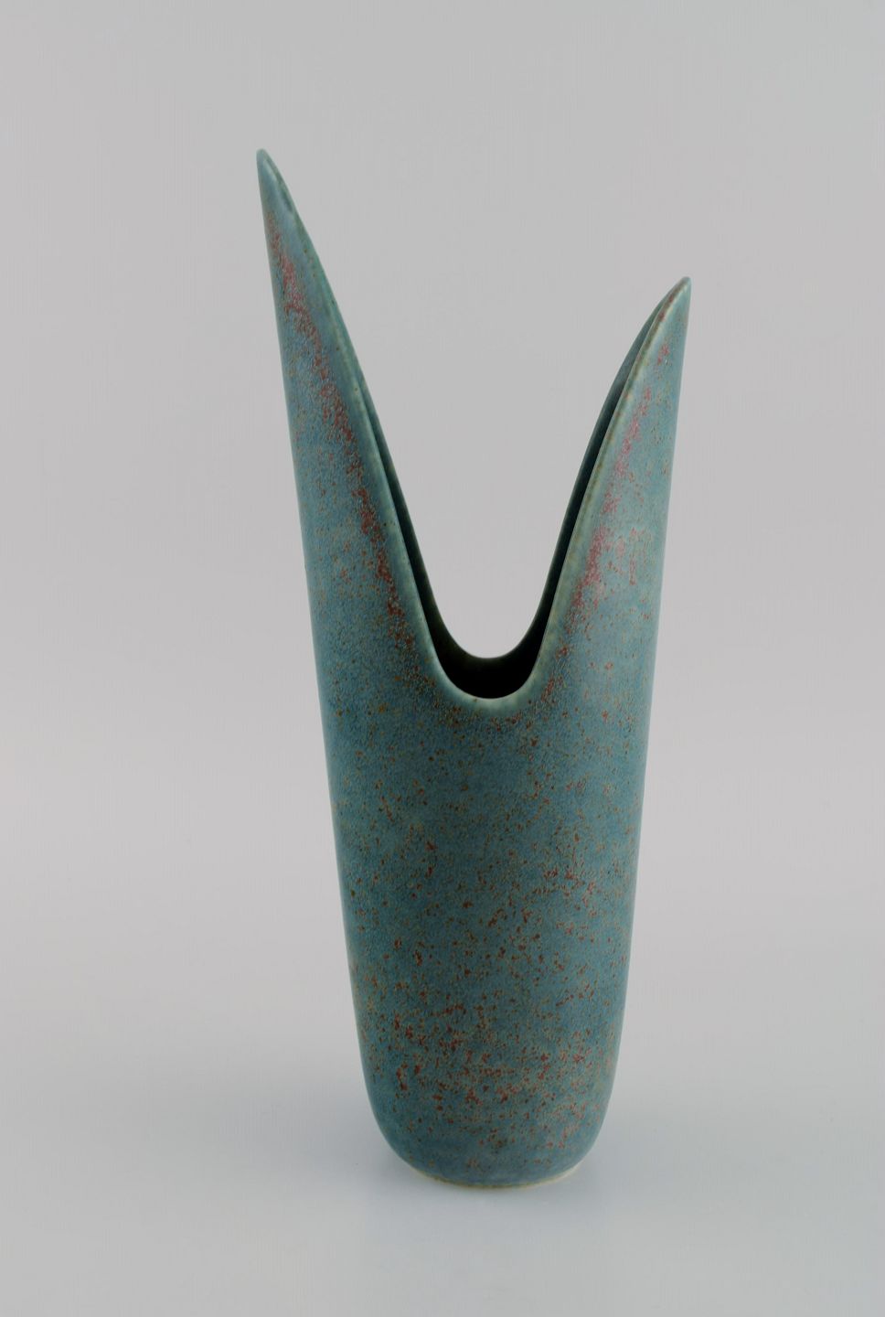 Gunnar Nylund for Rörstrand. Sjælden vase i glaseret keramik. Smuk glasur i blågrønne nuancer. Midt 1900-tallet. Måler: 30,5 x 13 cm. I flot stand. Signeret. 2. Sortering.