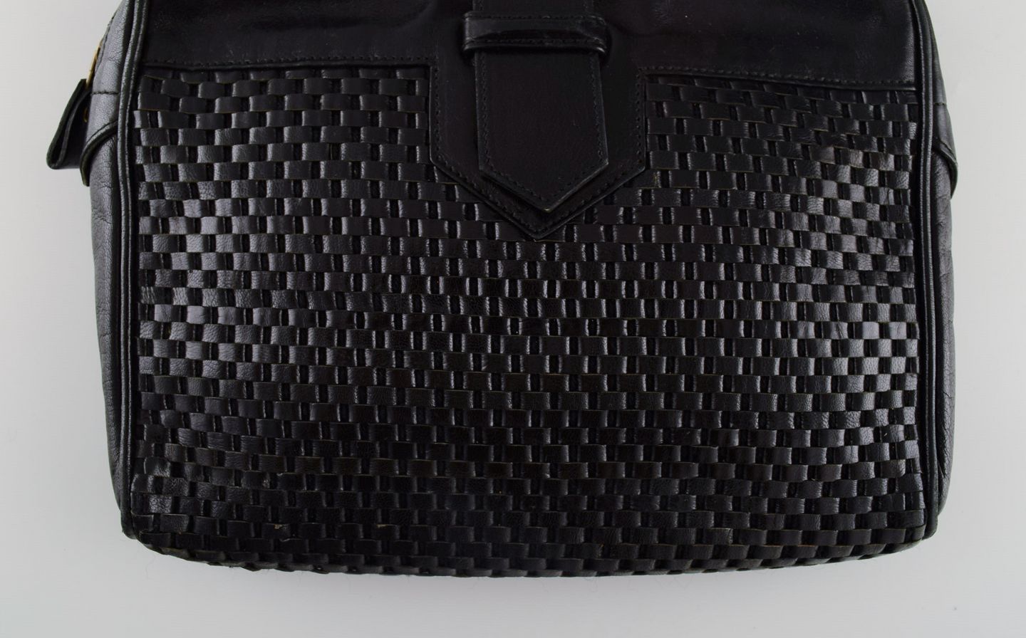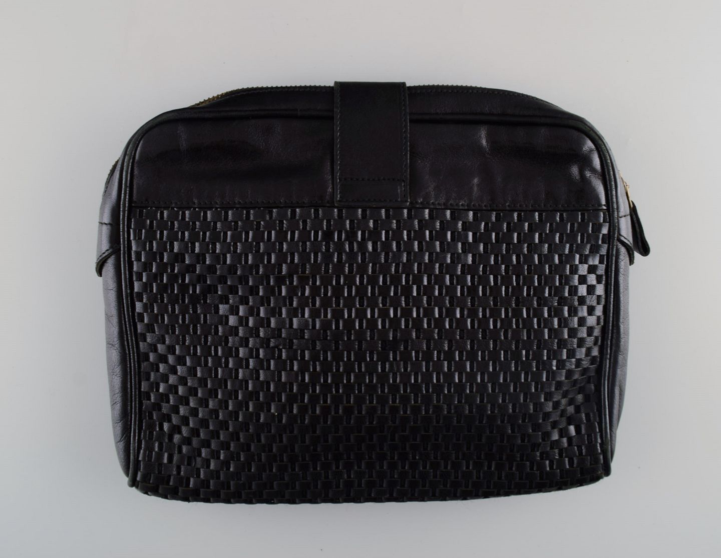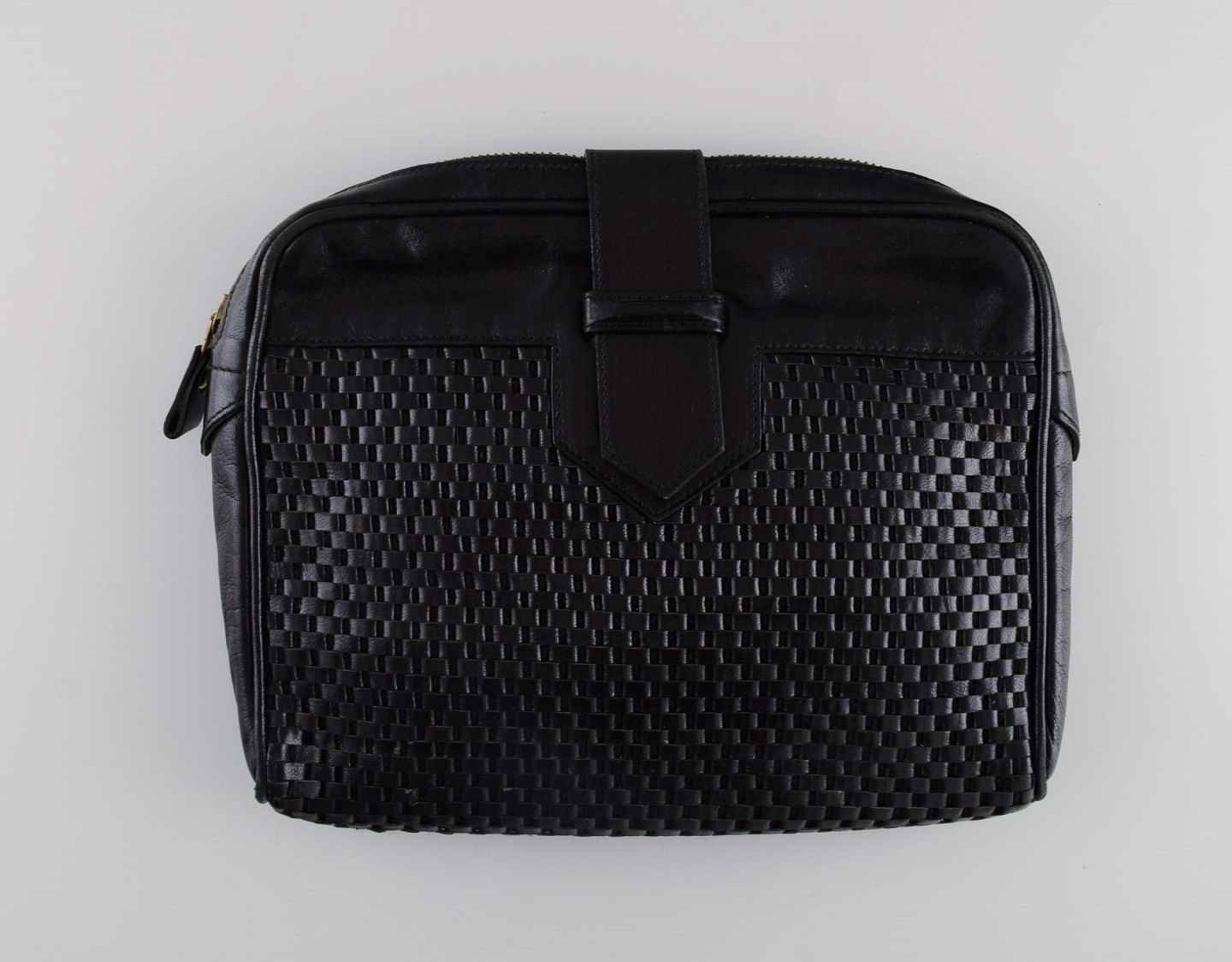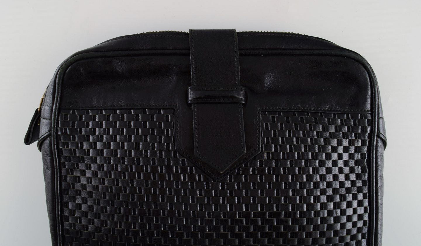 Vintage Yves Saint Laurent selskabstaske i sort læder med flettet mønster. 1960/70'erne. Måler: 26 x 21 x 4 cm. I flot stand. Stemplet.