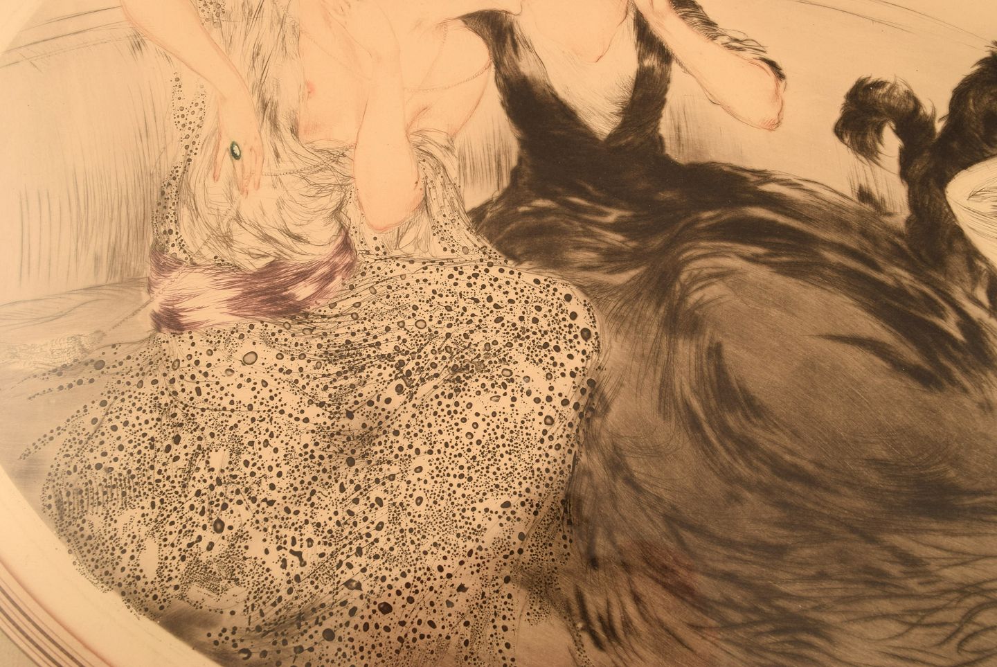 Louis Icart (1888-1950). Radering på papir. To unge kvinder med kat. Ca 1920.