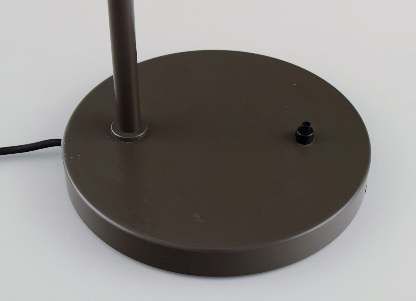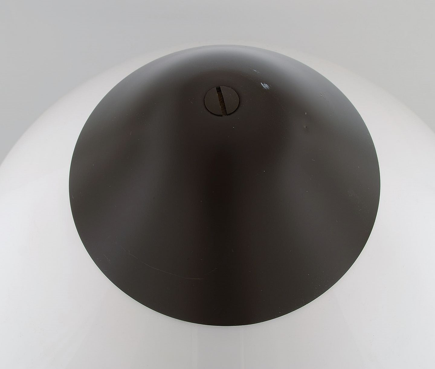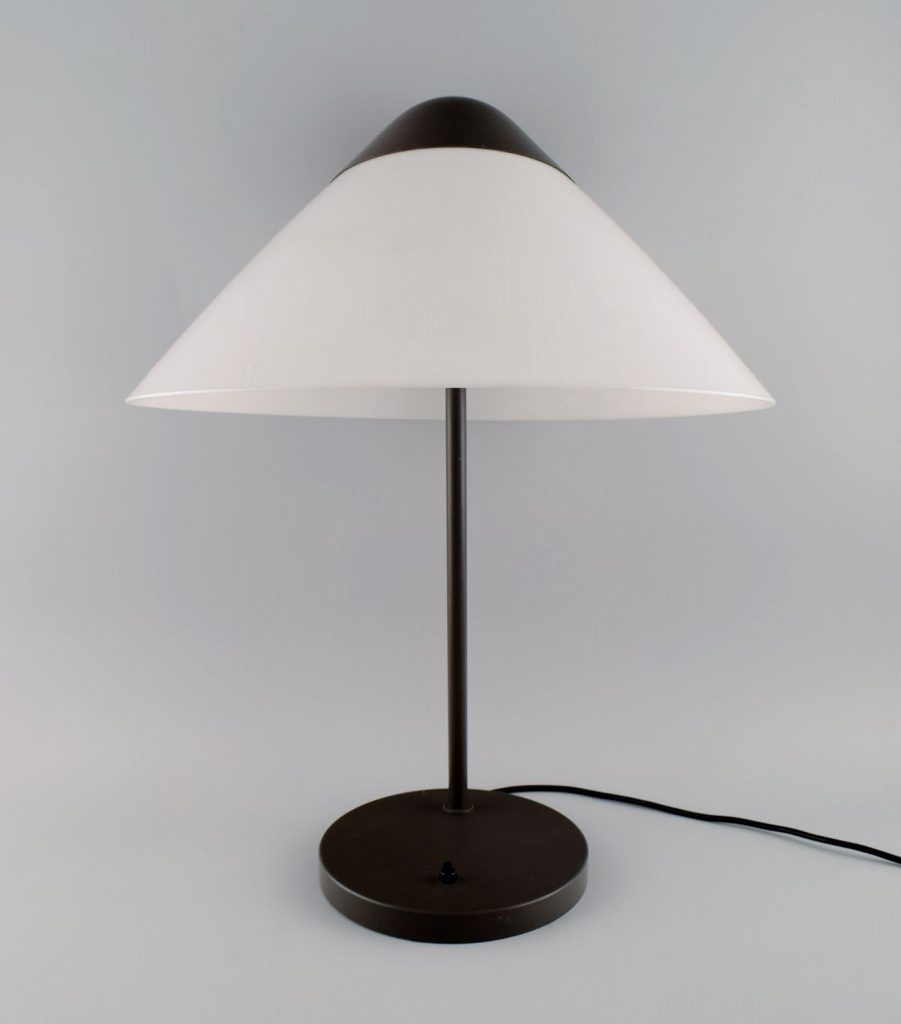 Hans J. Wegner. Opala bordlampe i lakeret aluminium og opalglas. Stor model. Sent 1900-tallet. Højde: 58 cm. Skærm diameter: 41,5 cm. Fod diameter: 21 cm. I flot stand.