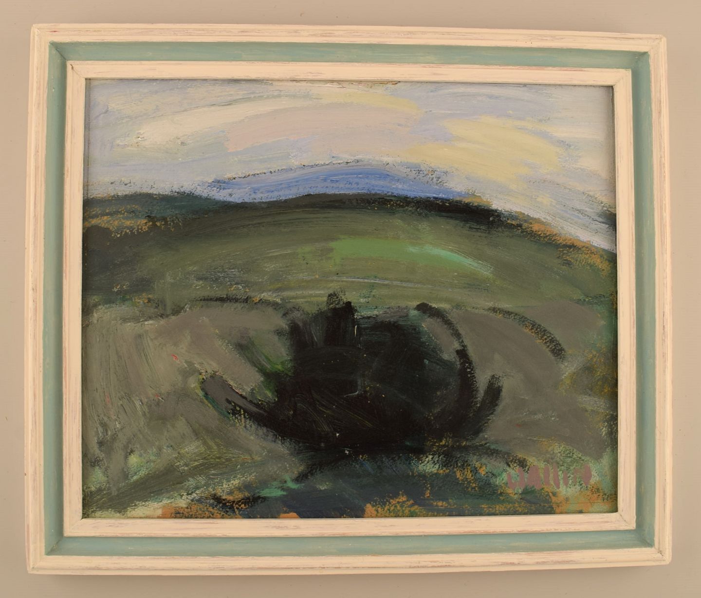 Helmer Wallin (1906-2004), Sverige. Olie på plade. Modernistisk landskab. 1960'erne.