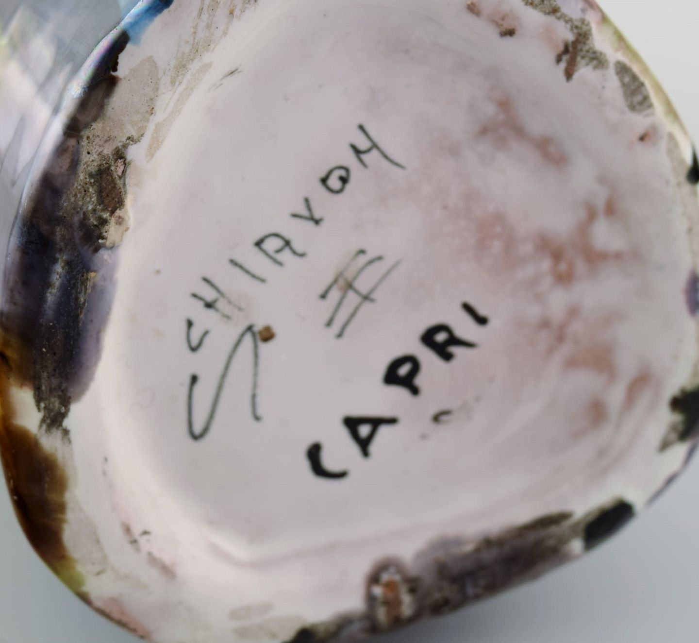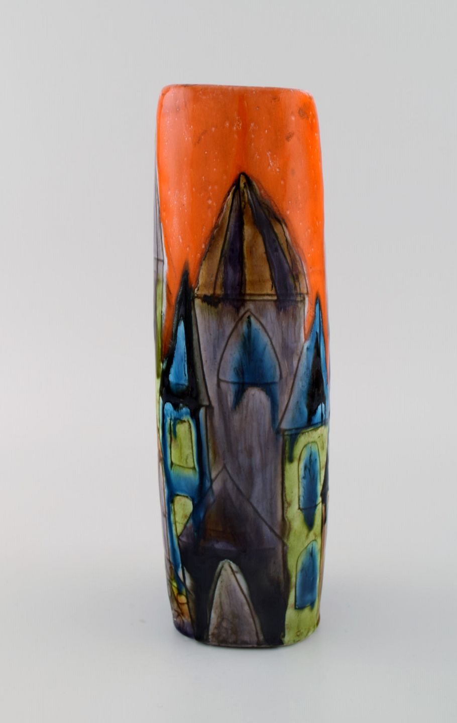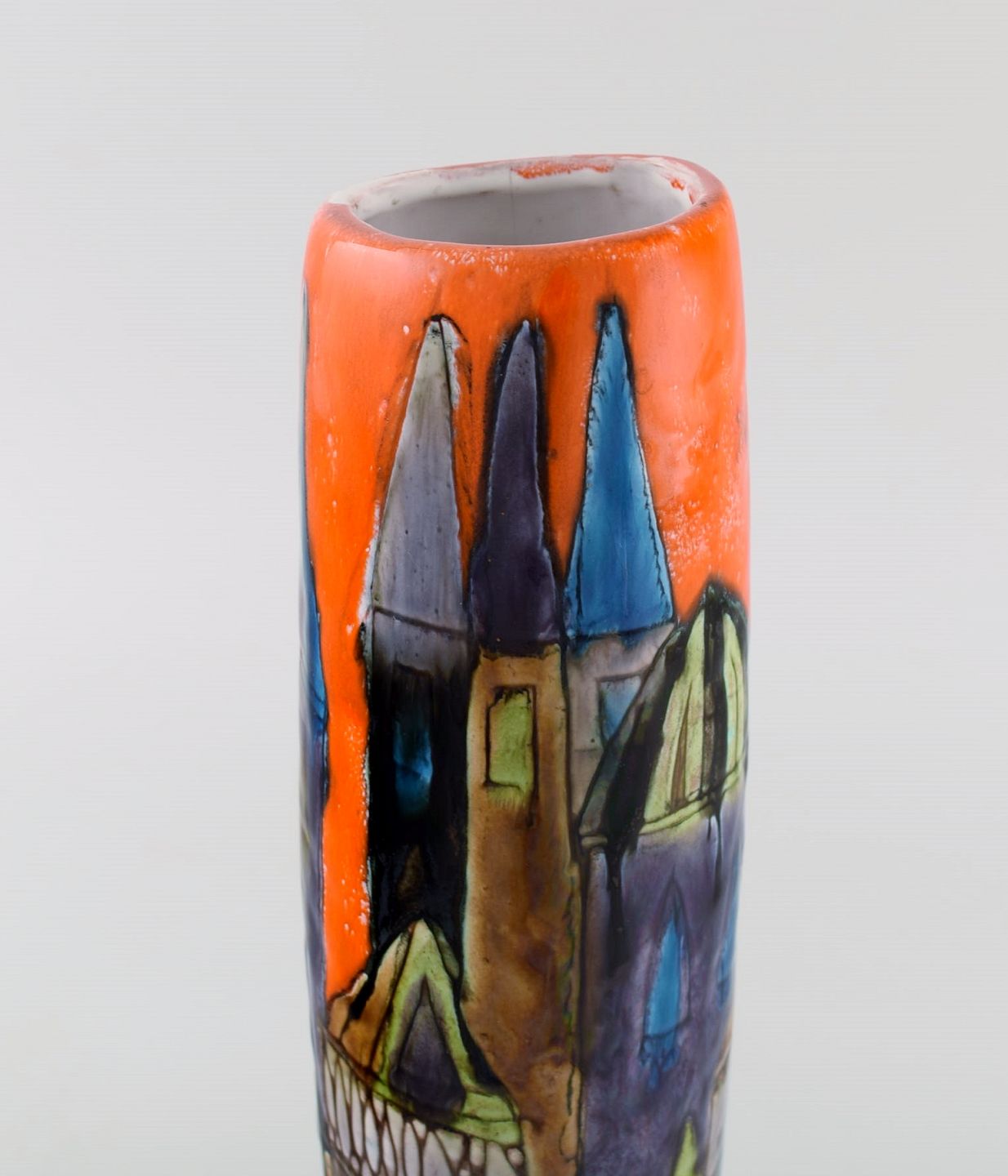 Elio Schiavon (1925-2004), Italien. Unika vase i glaseret keramik med håndmalet bymotiv. 1960'erne.