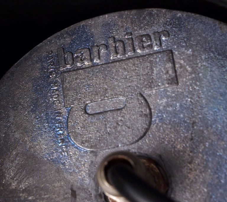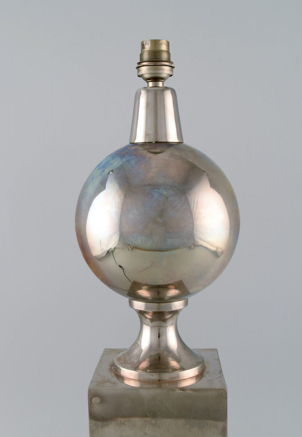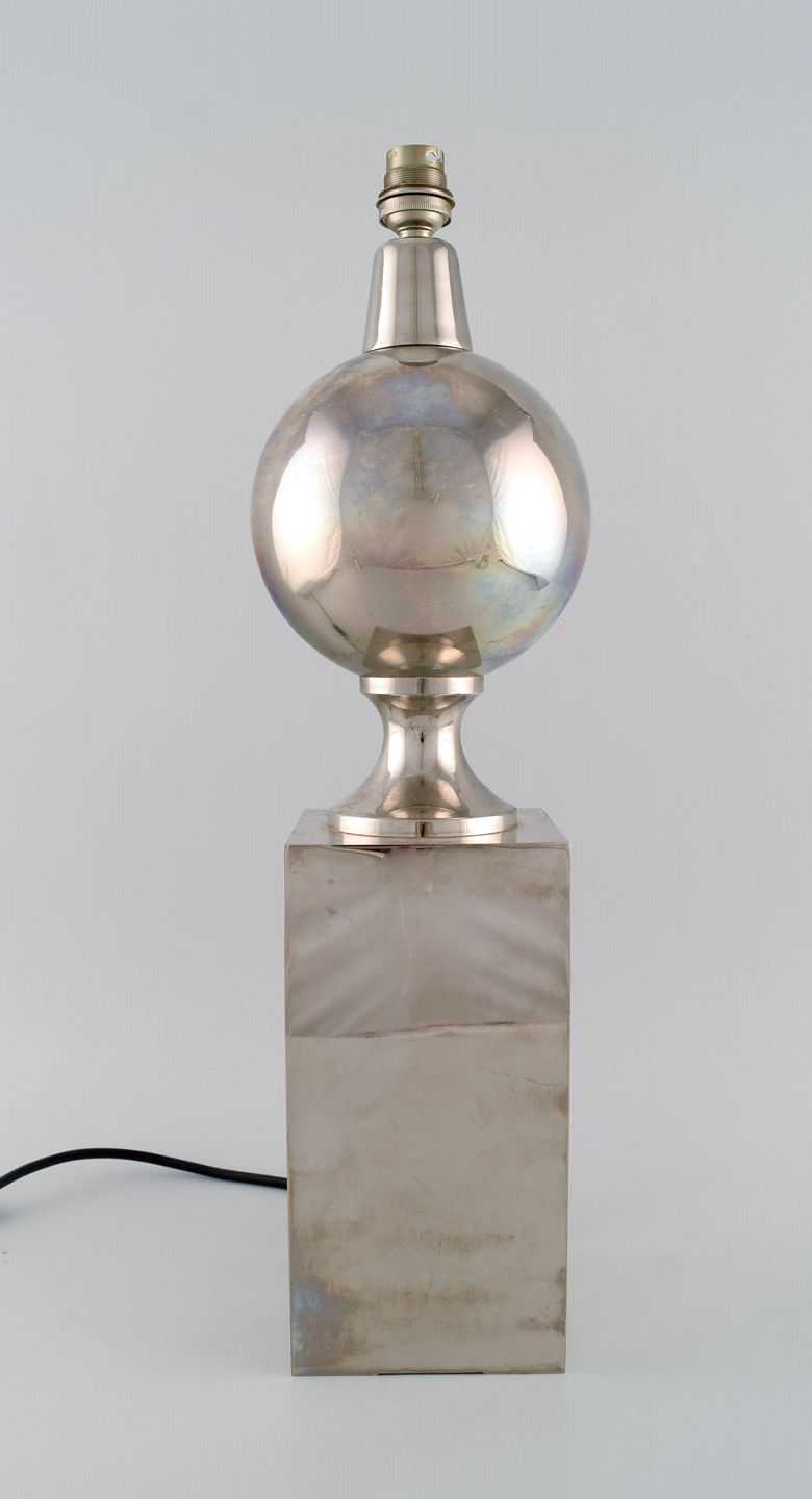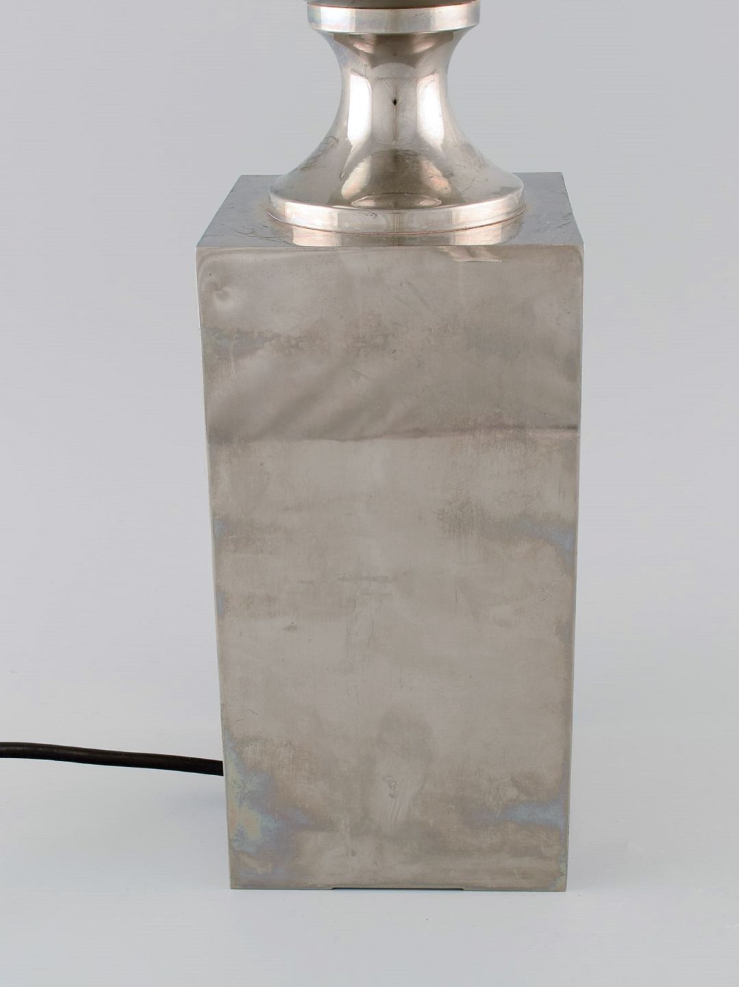 Philippe Barbier, Paris. French designer table lamp in satin chromed metal. 1970s.