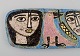 Mari Simmulson for Upsala-Ekeby. Sjælden vægplakette i glaseret stentøj. To kvinder og fugl. Midt 1900-tallet. Måler: 26 x 10,5 cm. I flot stand. Enkelte glasur afskalninger. Stemplet.