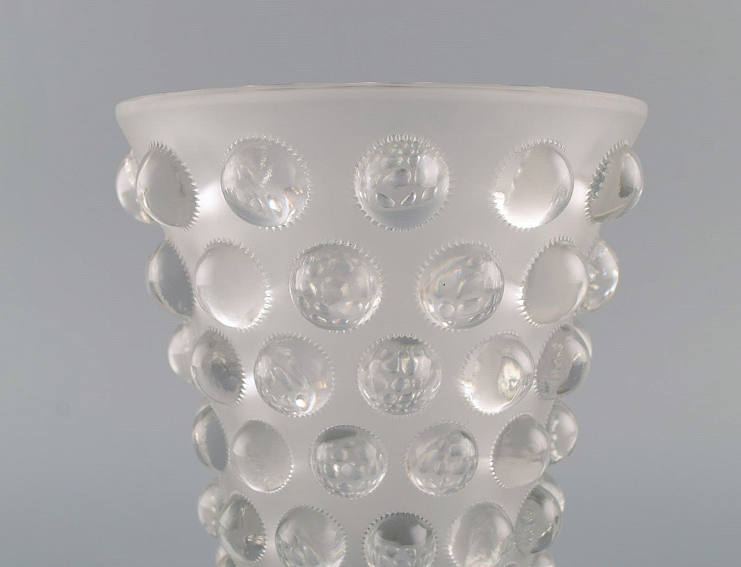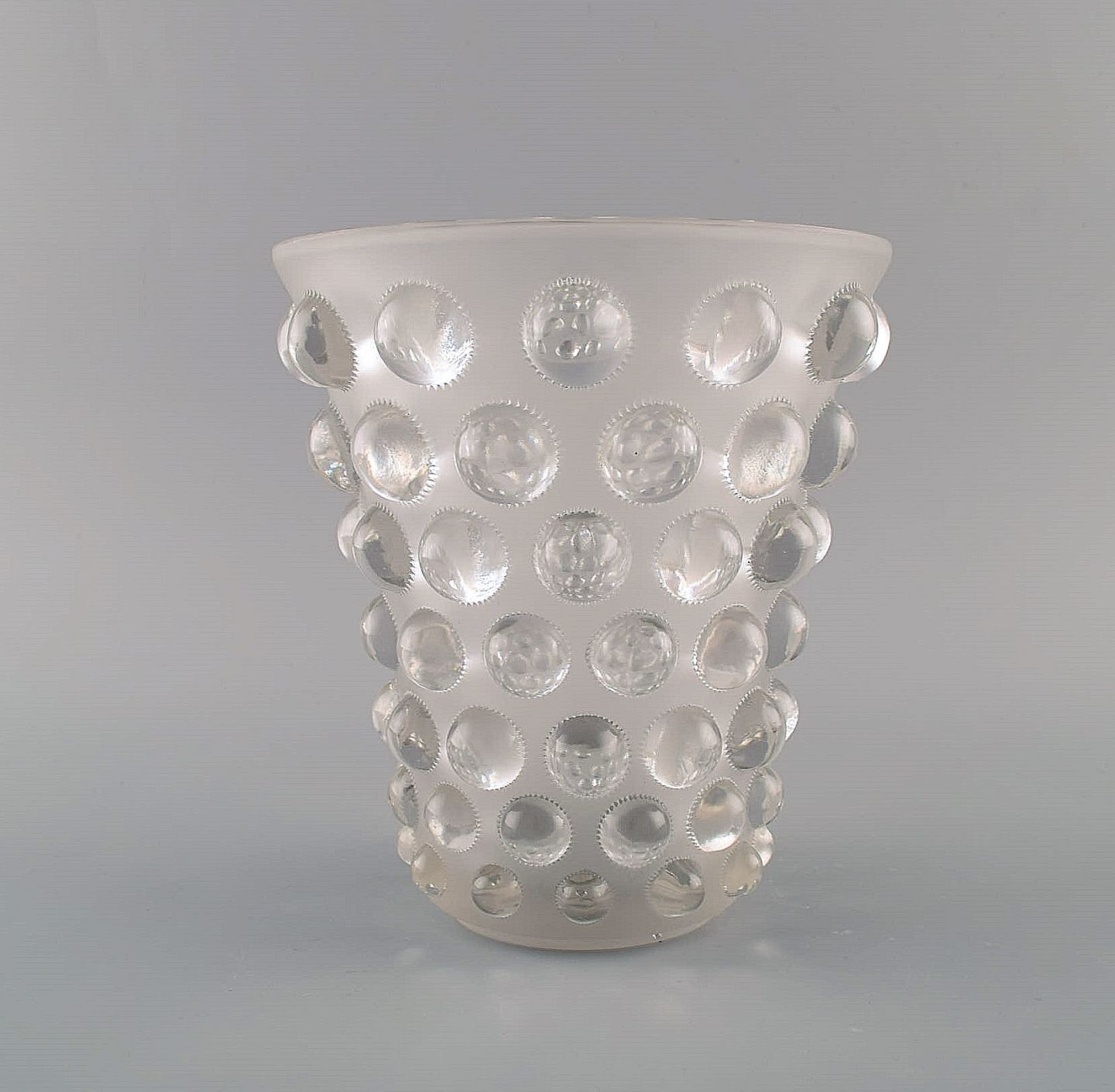 Early and rare René Lalique Bamako vase in clear mouth blown art glass. 1930s. Measures: 18.5 x 16.5 cm. In excellent condition. Stamped: R. Lalique, France.