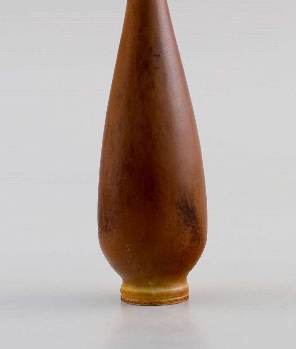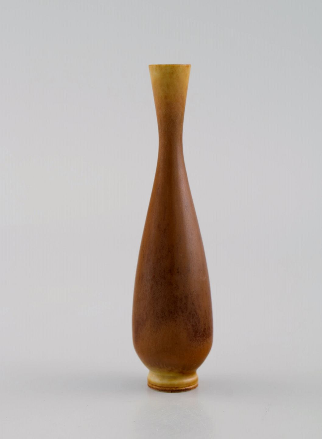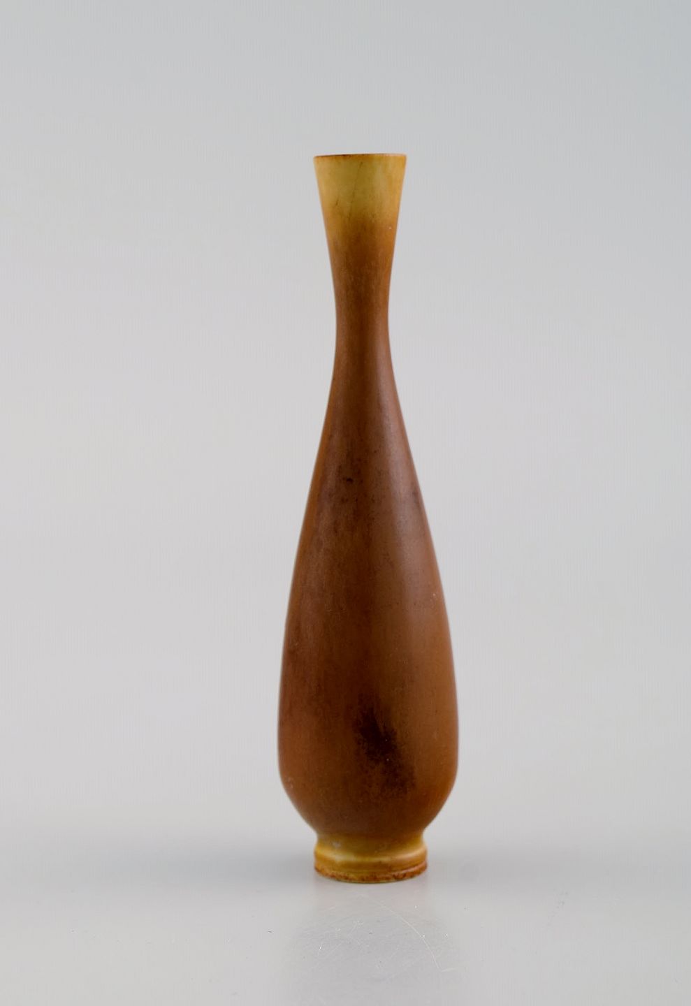 Berndt Friberg (1899-1981) for Gustavsberg Studiohand. Miniature vase i glaseret keramik. Smuk glasur i lyse brune nuancer. Midt 1900-tallet.