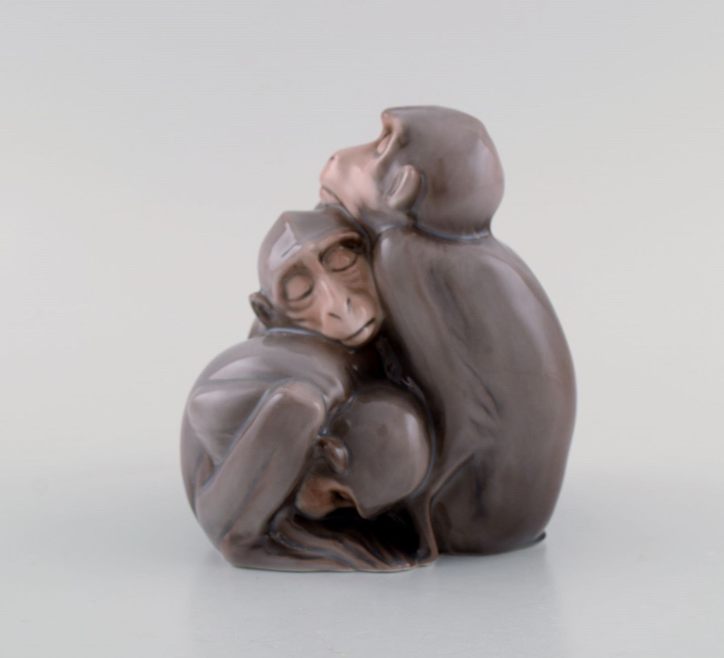 Bing & Grøndahl porcelænsfigur. Sovende aber. Modelnummer 1581. Midt 1900-tallet.