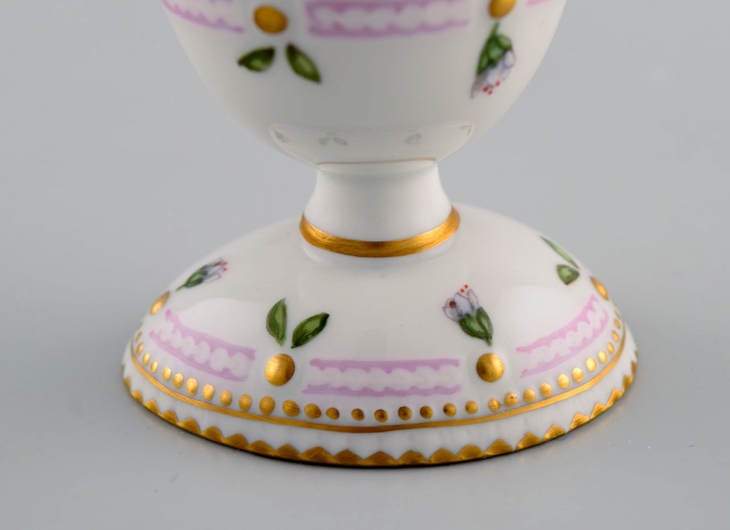 Royal Copenhagen Flora Danica æggebæger i håndmalet porcelæn med blomster og gulddekoration. Modelnummer 20/3530.